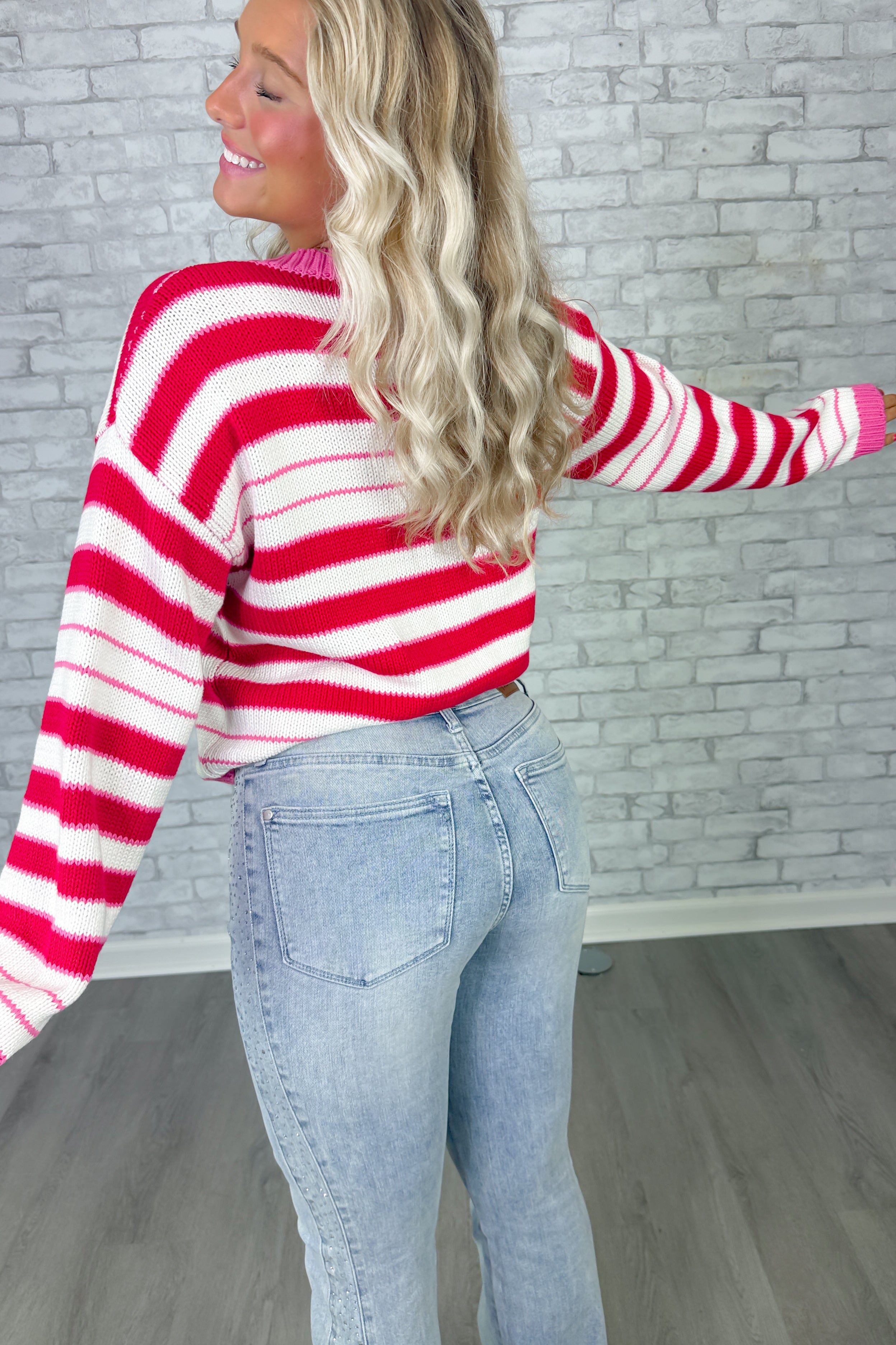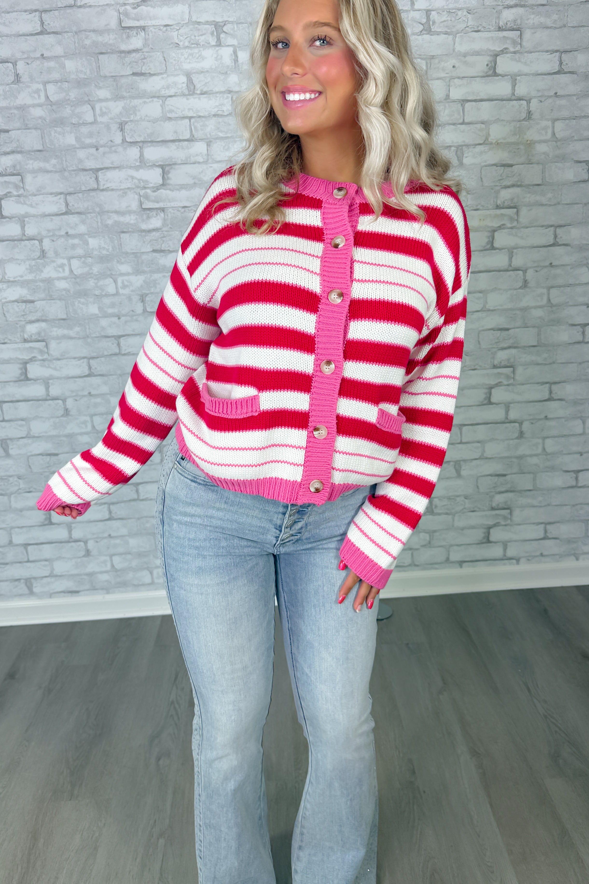 Raspberry Rush Striped Cardigan