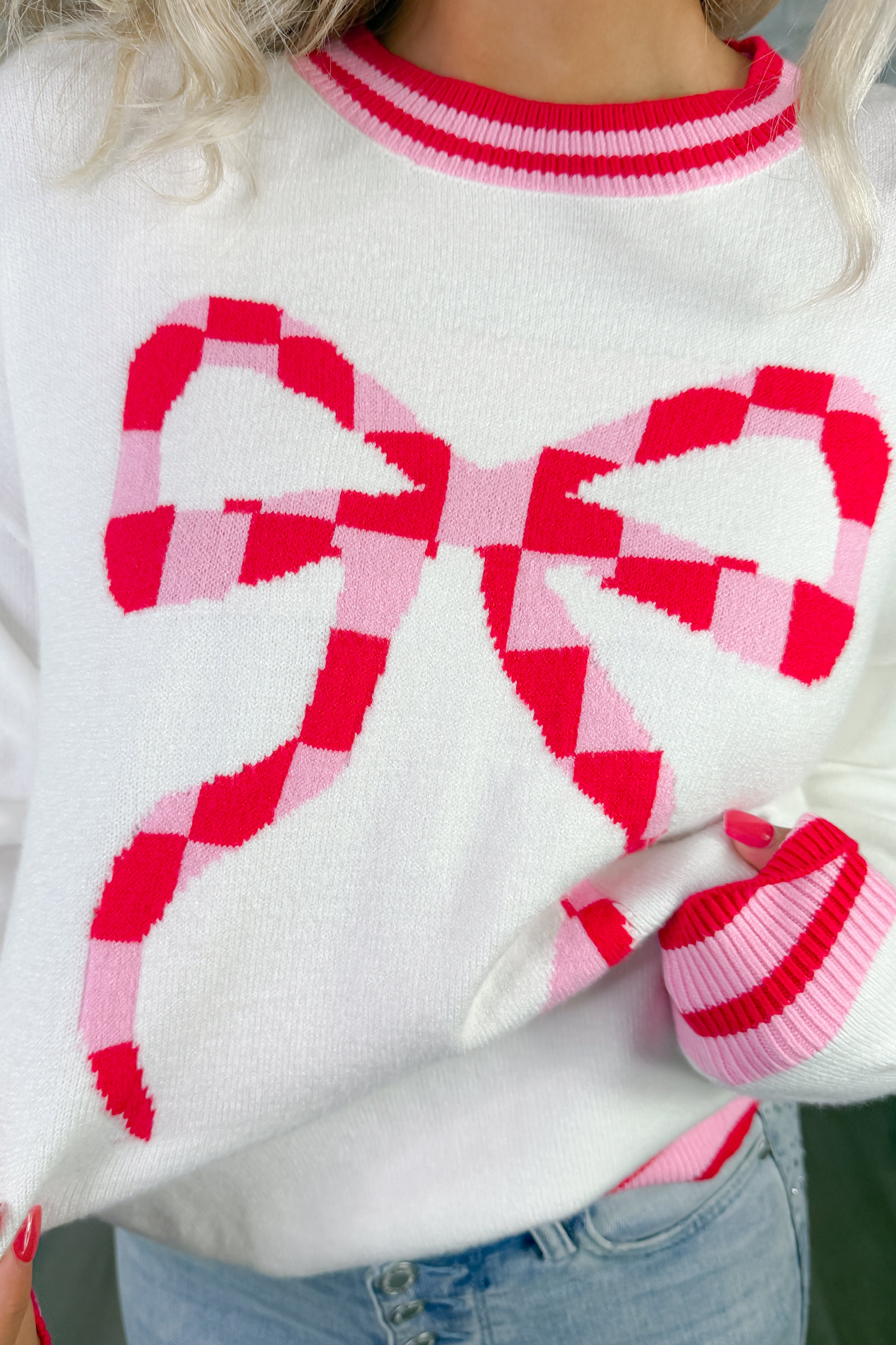 Ribbon Reveal Pink Sweater