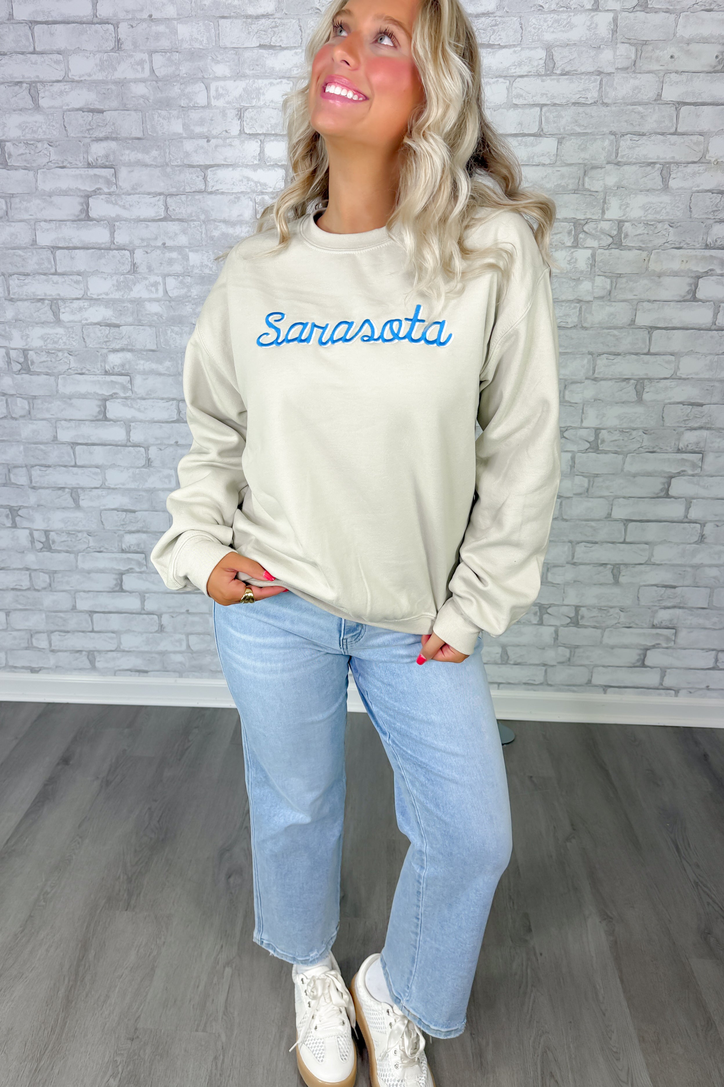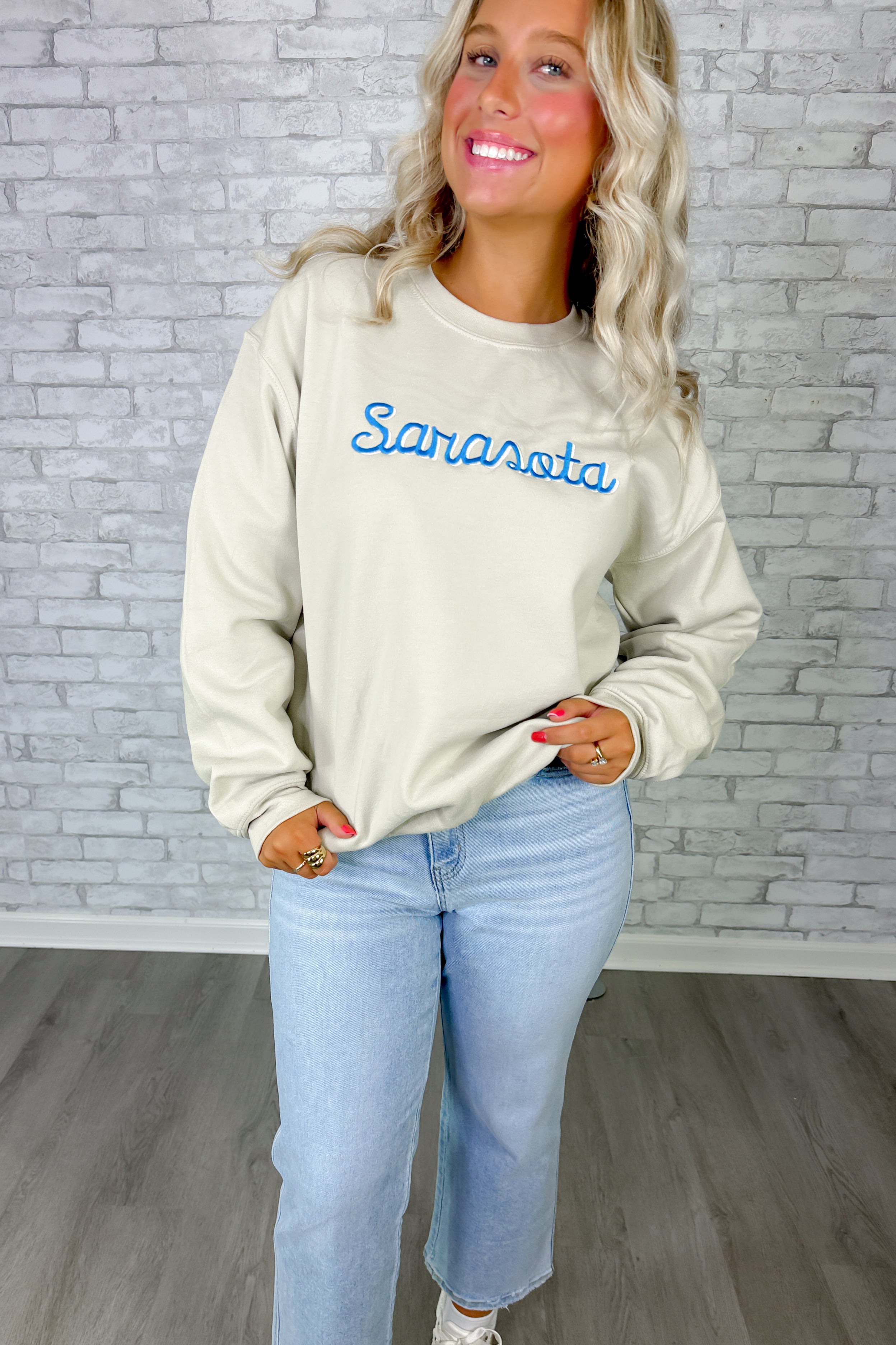 Sarasota Embroidered Crewneck- Sand