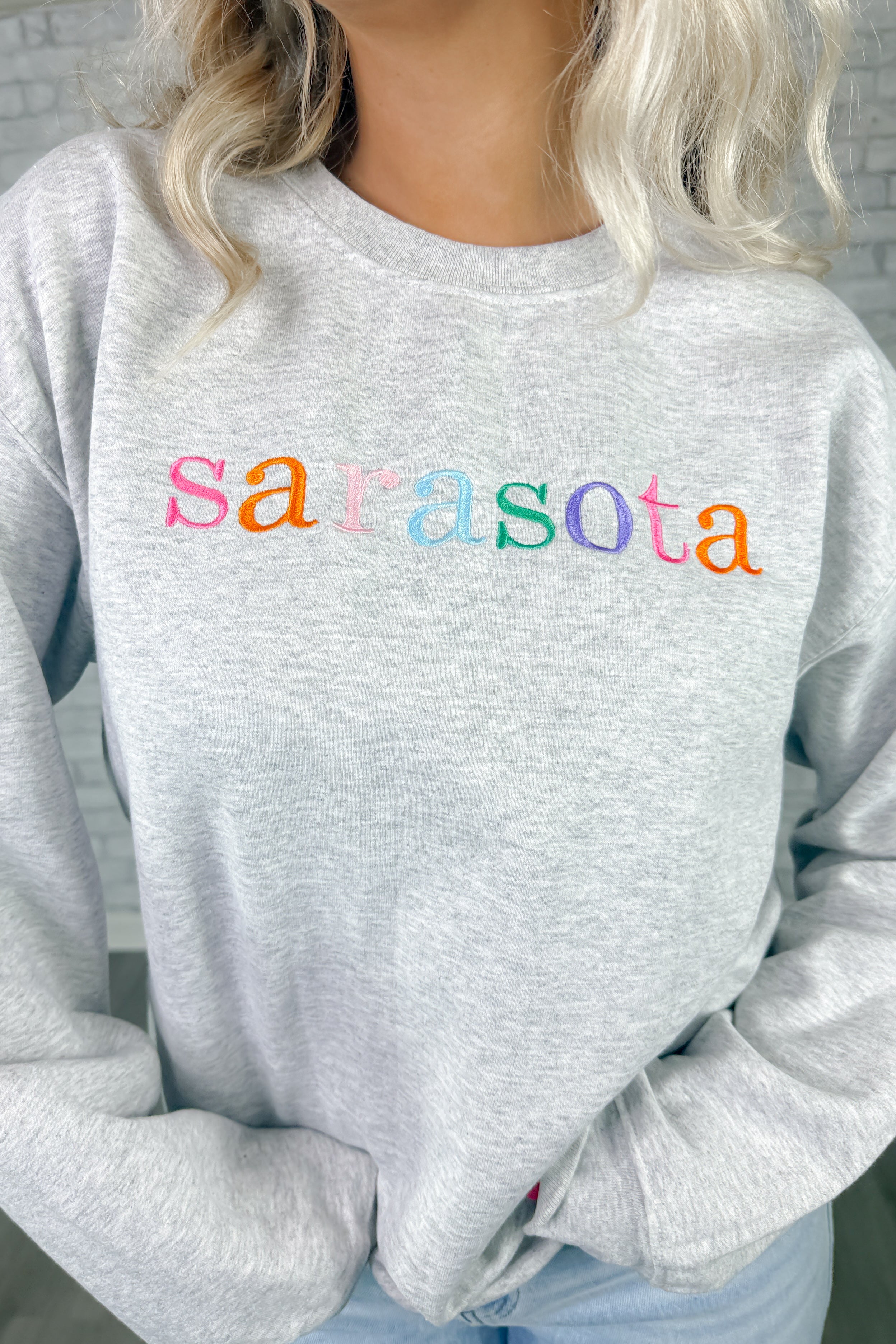 Sarasota Embroidered Crewneck- Ash Grey