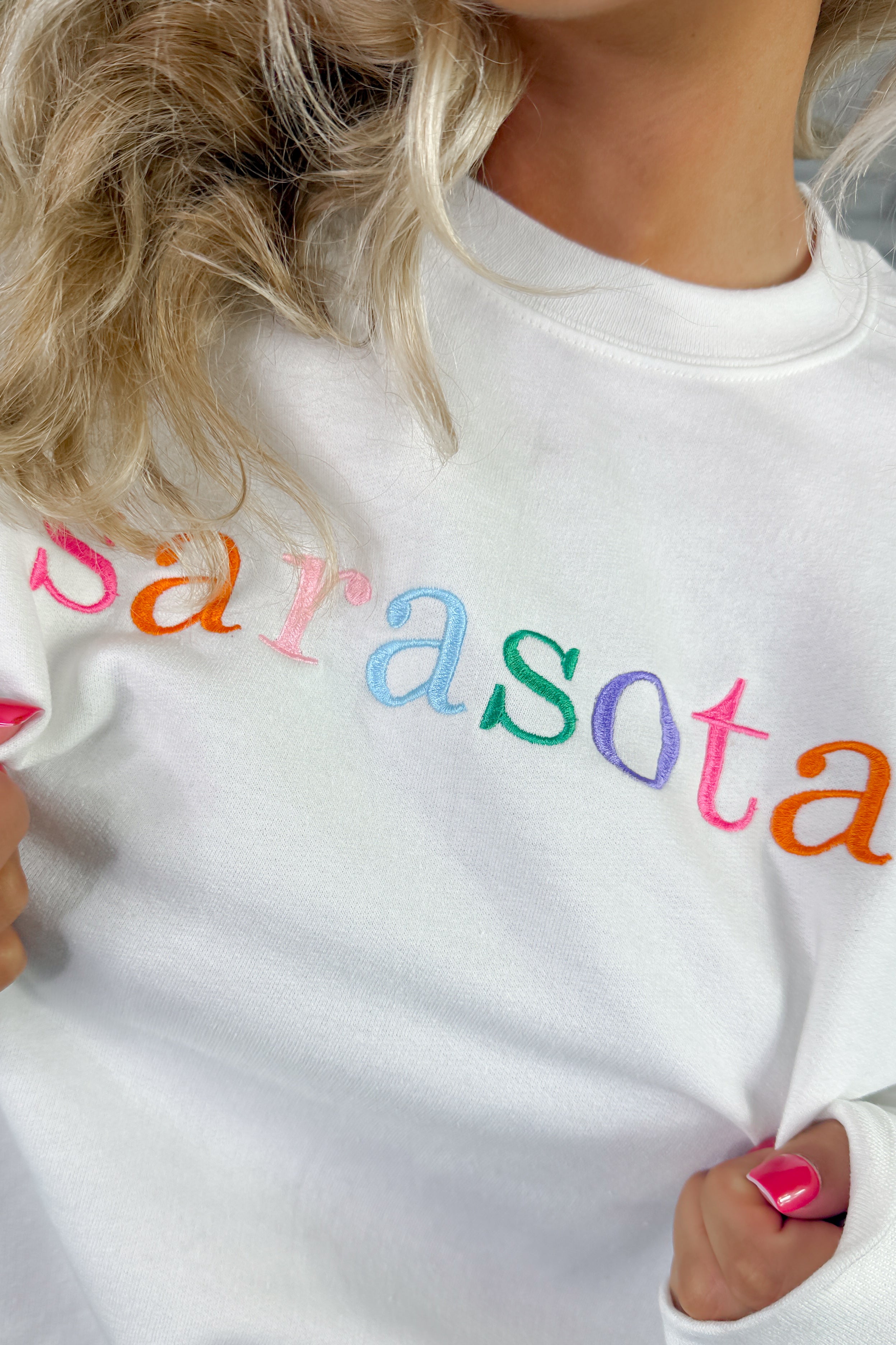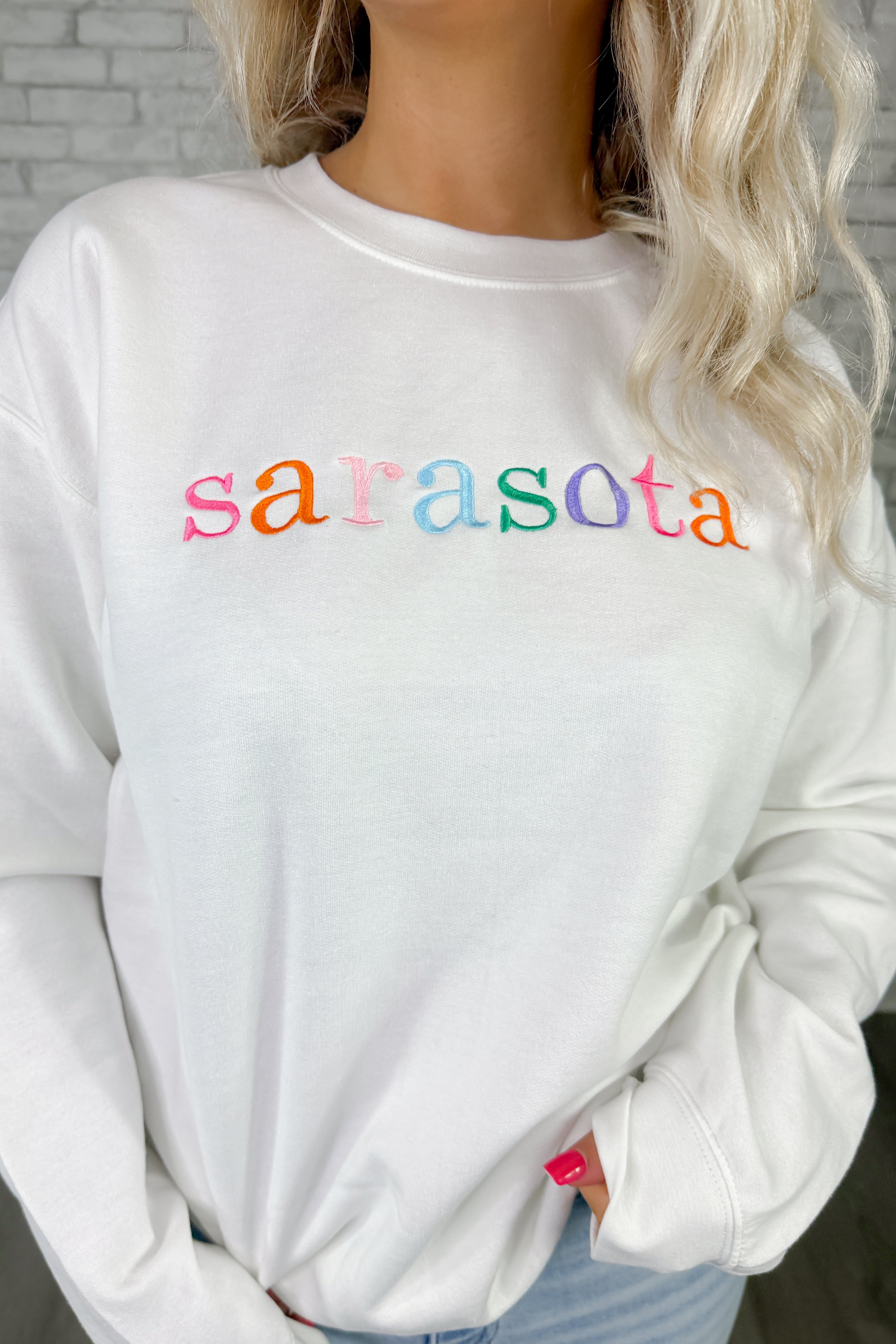Sarasota Embroidered Crewneck- White
