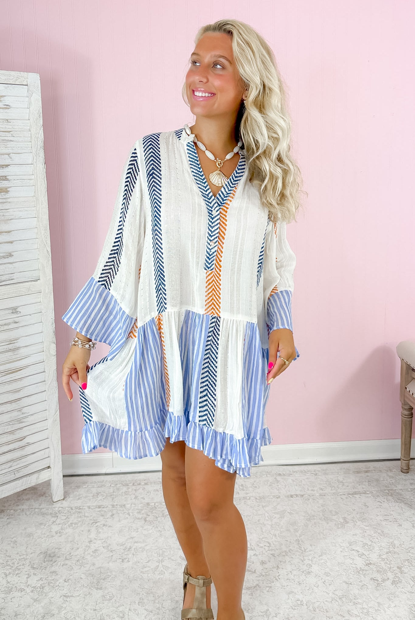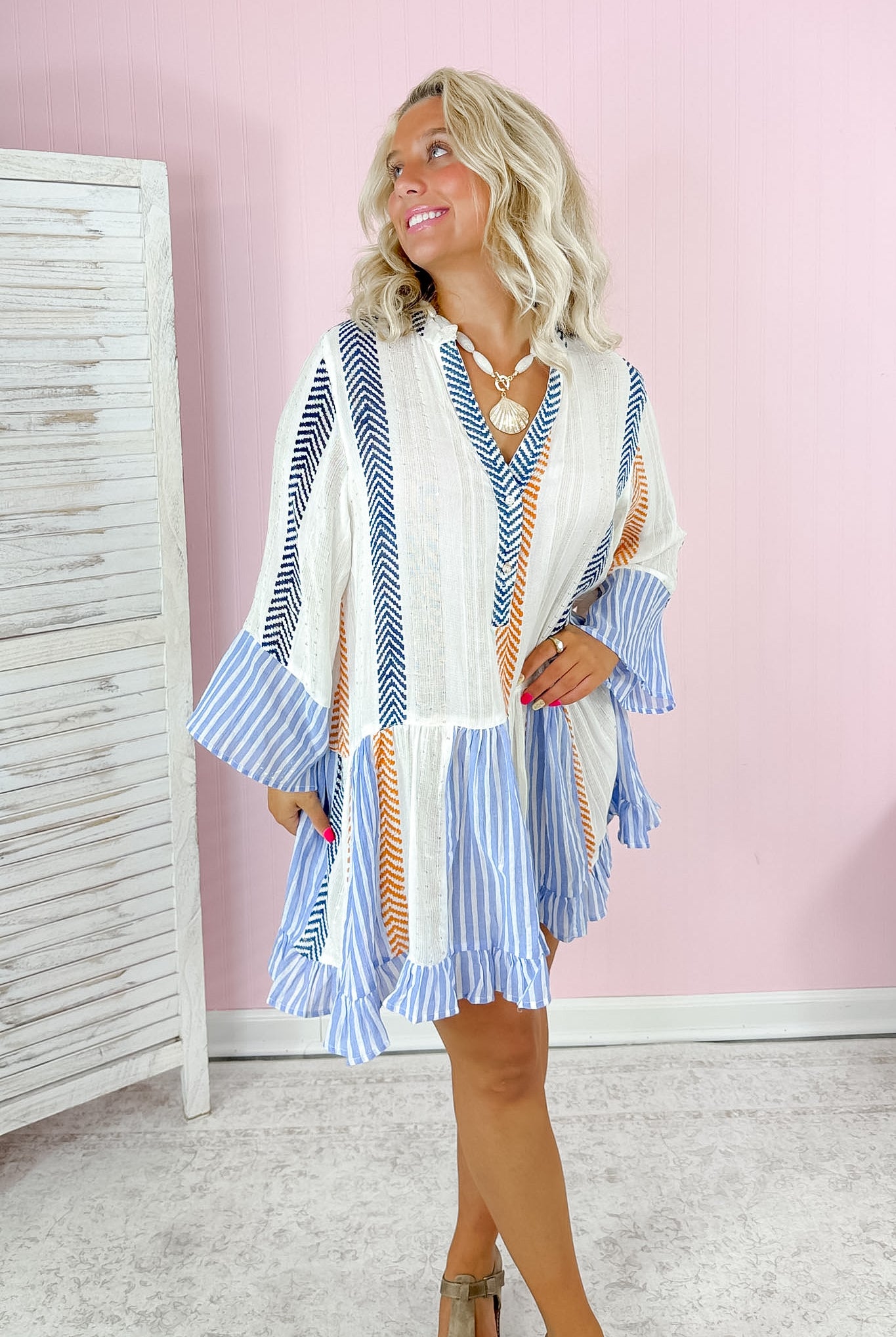 Coastline Cutie Mini Dress- Pink