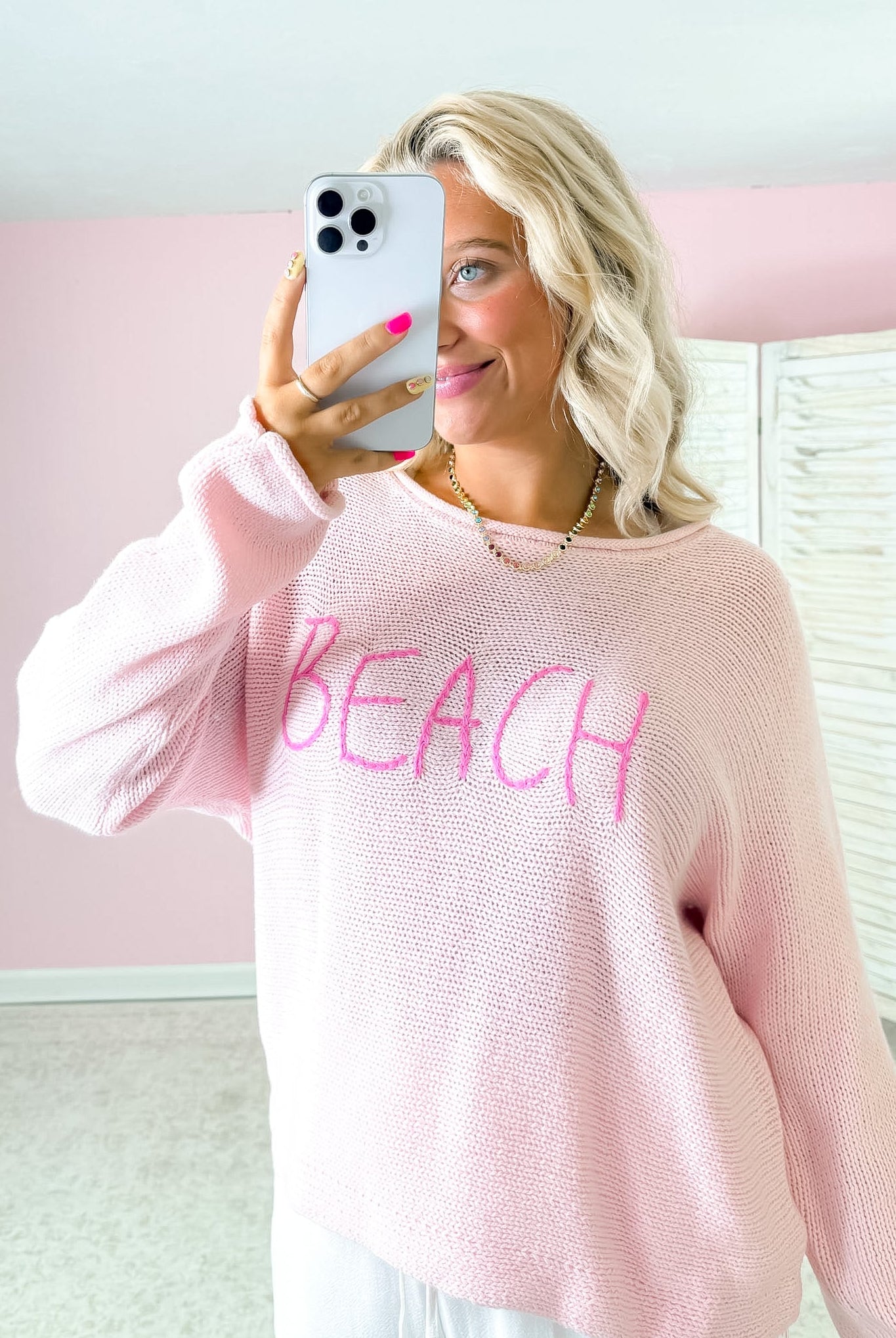 Beach Braided Coral Sweater