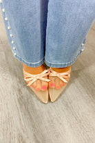 - Designed in a soft blush hue with a sheer mesh finish and delicate velvet bow, these heels bring the perfect blend of charm and sophistication.