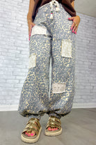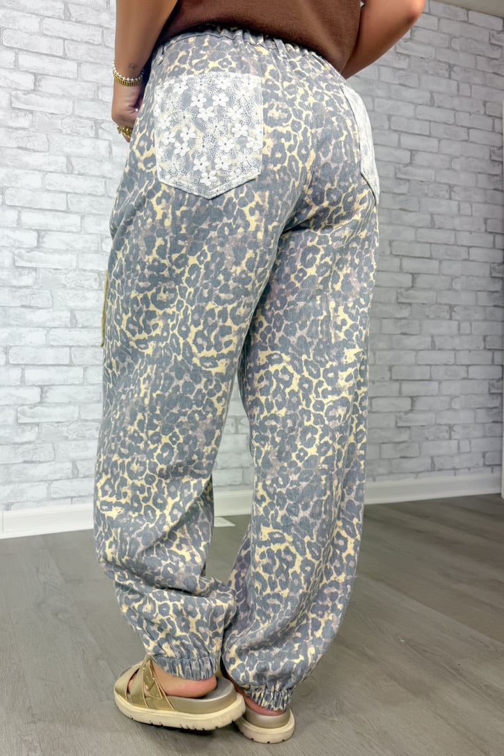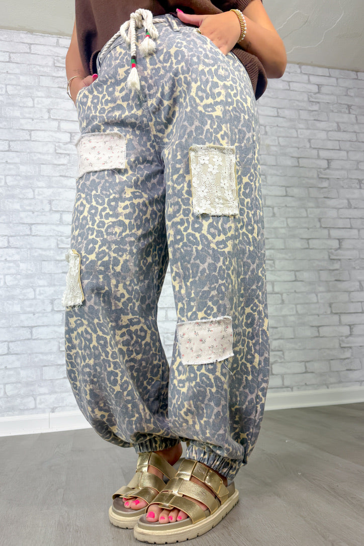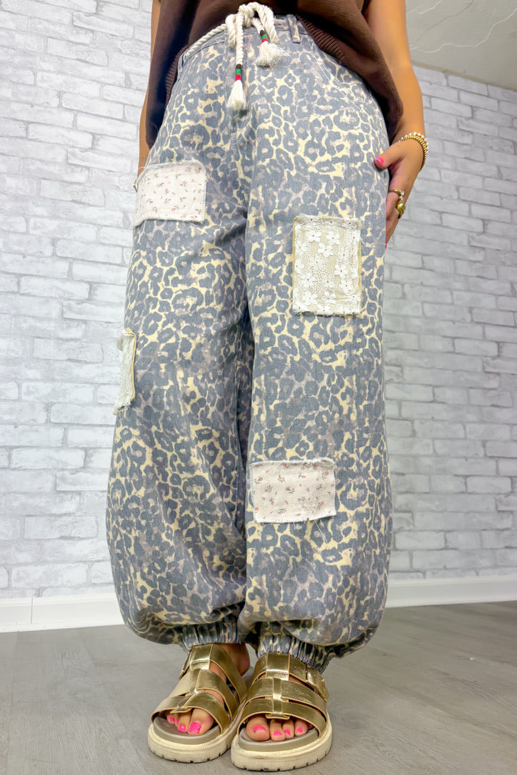 - Designed with a relaxed, wide-leg fit and intricate patchwork details, these pants bring a boho-chic edge to any outfit. The neutral leopard print pairs perfectly with cozy knits, cropped tees, or flowy blouses, making them a statement piece you’ll wear all season long.