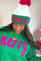 Ho Ho Ho Pink & Green Beanie