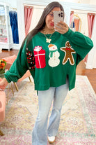 - This cozy pullover captures everything you love about the season — from gingerbread cookies and snowmen to twinkling trees and ribbon-wrapped gifts