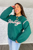- Ultra-soft sweatshirt features a bold stitched jolly graphic that adds the perfect pop of holiday cheer while still feeling wearable all season long.