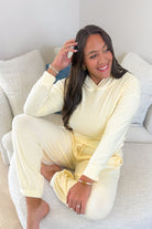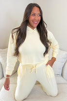 - Wrap yourself in effortless comfort with this soft and lightweight lounge top. Designed in a gentle banana cream hue, it’s crafted with a relaxed fit and cropped cut that pairs perfectly with joggers or high-waisted leggings.