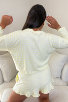 • The Happy Camp3r Buttercream Gingham Hazel Shorts bring sweet comfort to your lounge collection. Featuring a soft gingham knit, elastic waist, and flutter hem, these shorts are as comfy as they are cute. Pair with the Hazel Top for a matching set that’s perfect for lounging in style.
