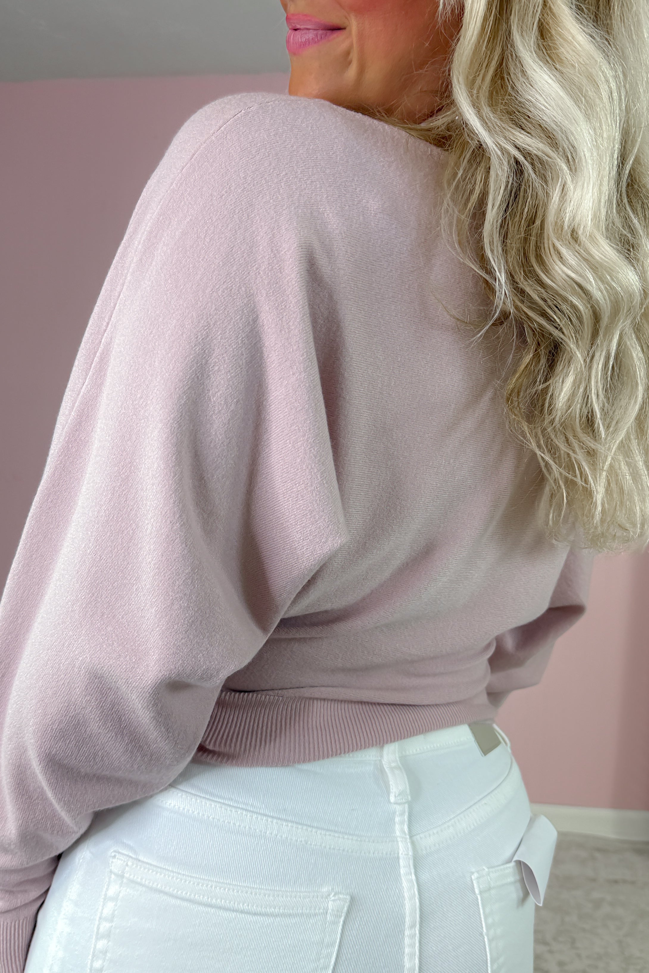 - Designed to be worn off the shoulder, it features a relaxed dolman sleeve and a wide ribbed waistband that flatters every silhouette.