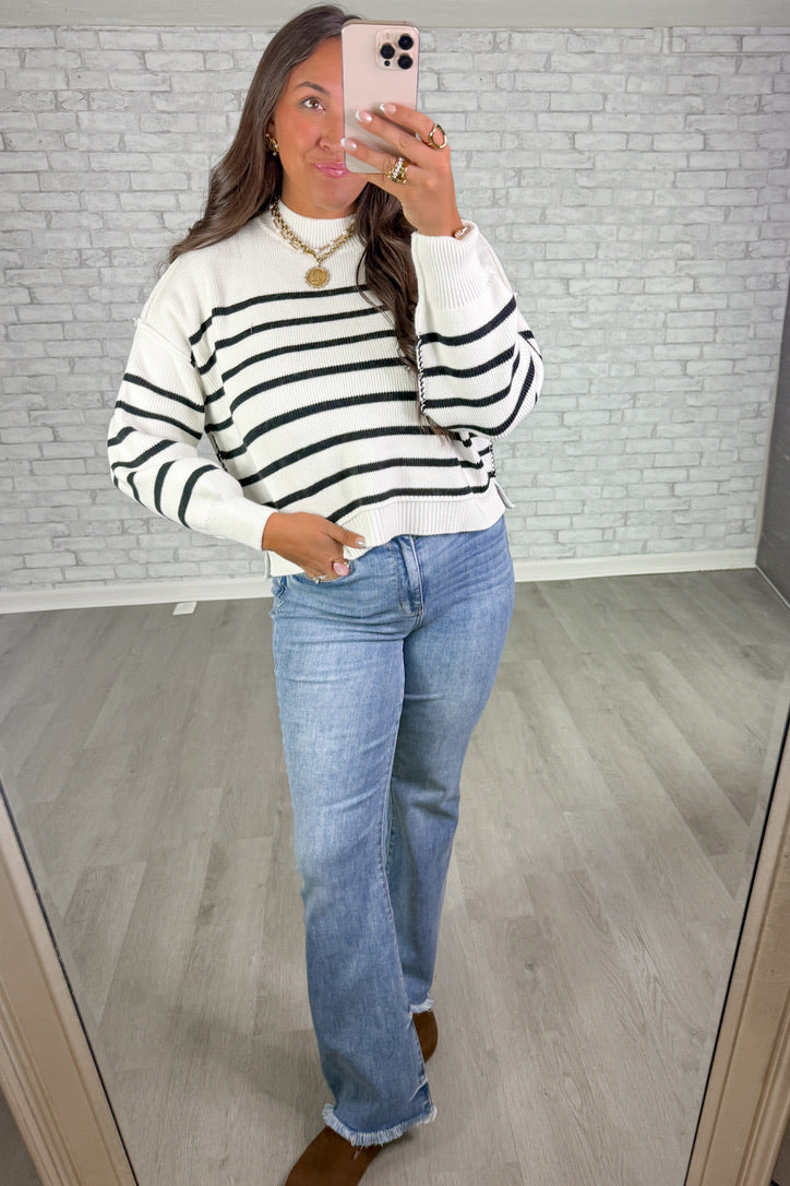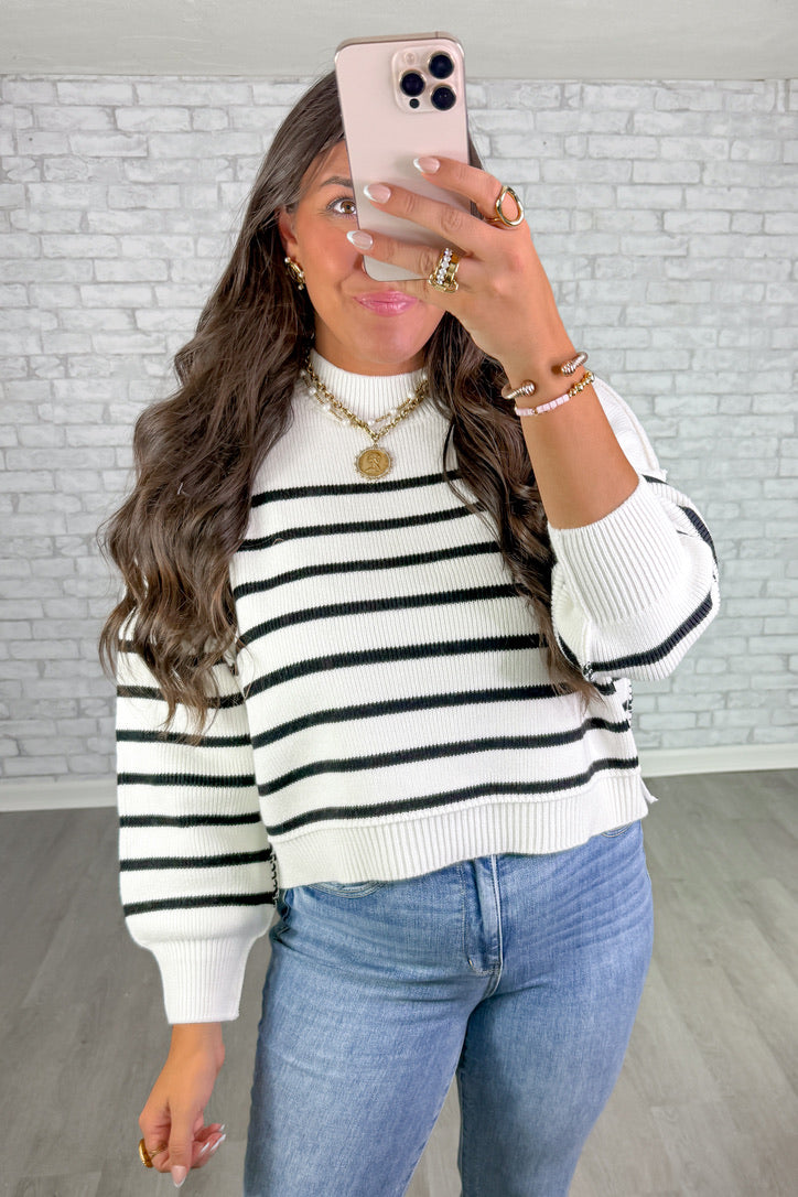 Frankie Stripe Sweater- White + Black