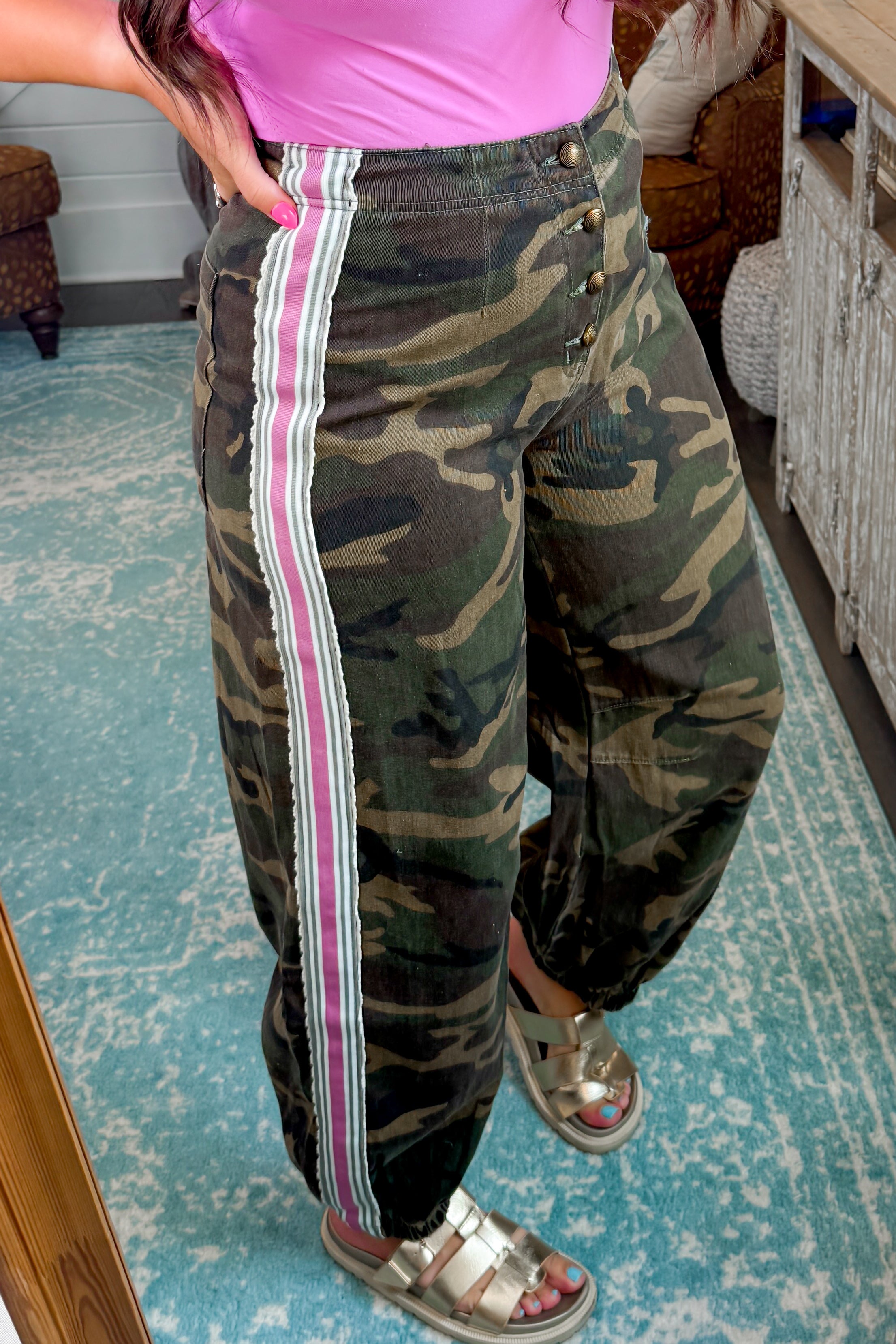 • These camo joggers are the perfect mix of edgy and fun with a pop of girly detail.