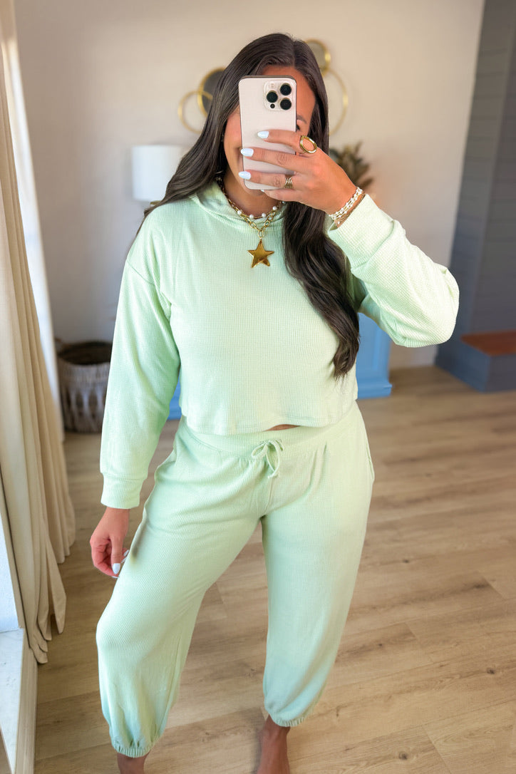 - Wrap yourself in effortless comfort with this soft and lightweight lounge top. Designed in a gentle banana green hue, it’s crafted with a relaxed fit and cropped cut that pairs perfectly with joggers or high-waisted leggings.