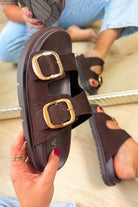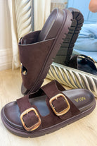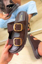 - A MUST HAVE SANDAL- with oversized gold buckles and a cushioned platform sole, they offer the perfect blend of everyday ease and modern style.