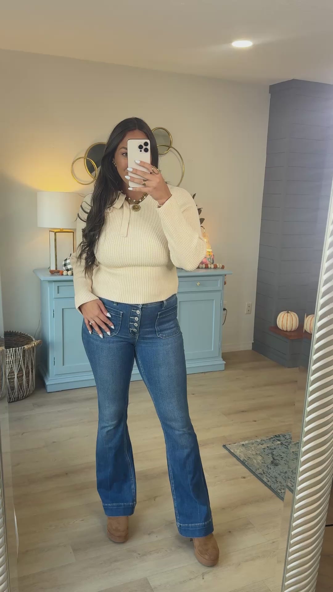 • This sweater adds a feminine touch with its delicate bow detail and flattering ribbed knit design. The soft fabric and timeless silhouette make it easy to style for work, dinner, or casual outings.