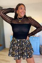 - The sheer long sleeves add a delicate touch while the snap bottom keeps it effortlessly practical.