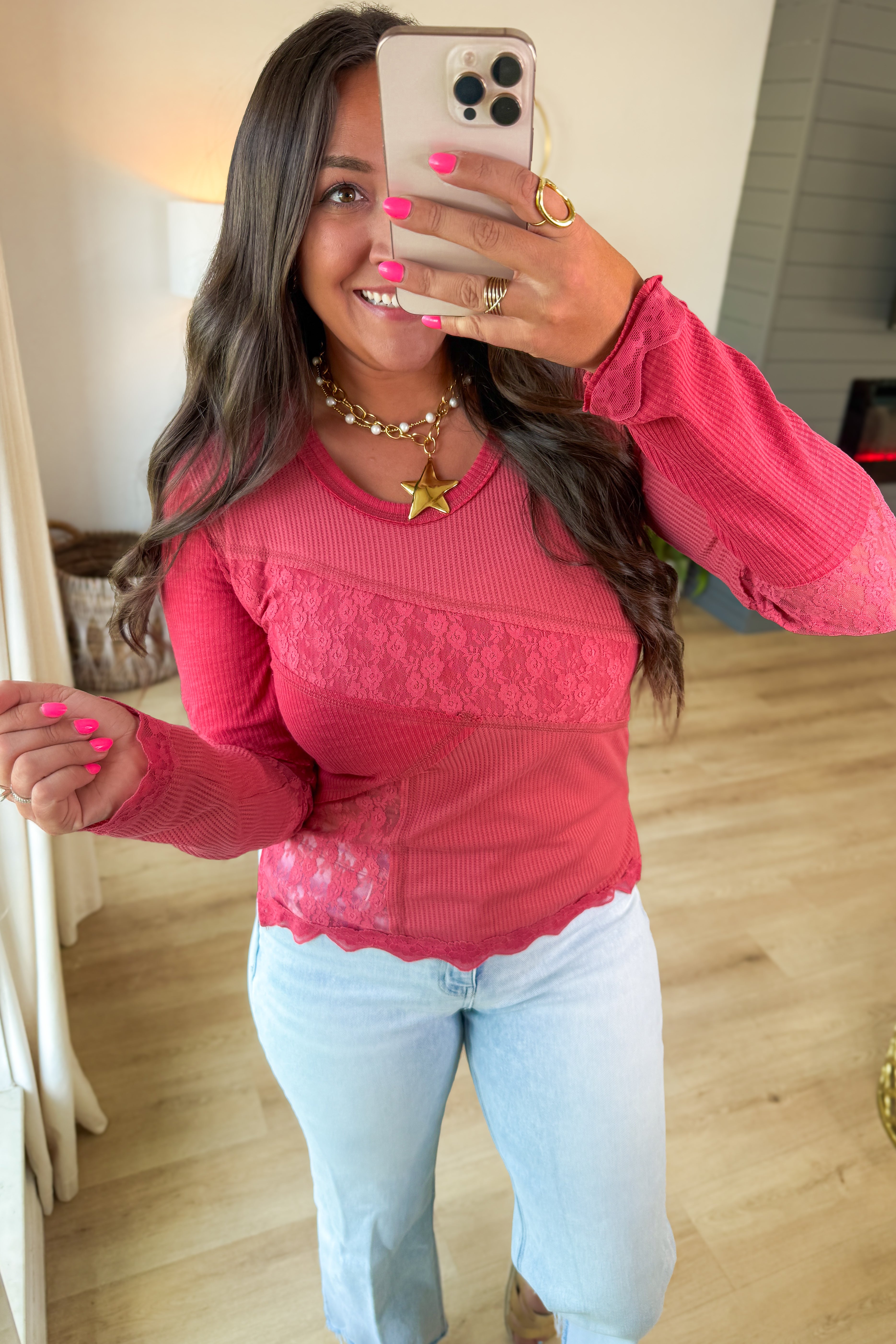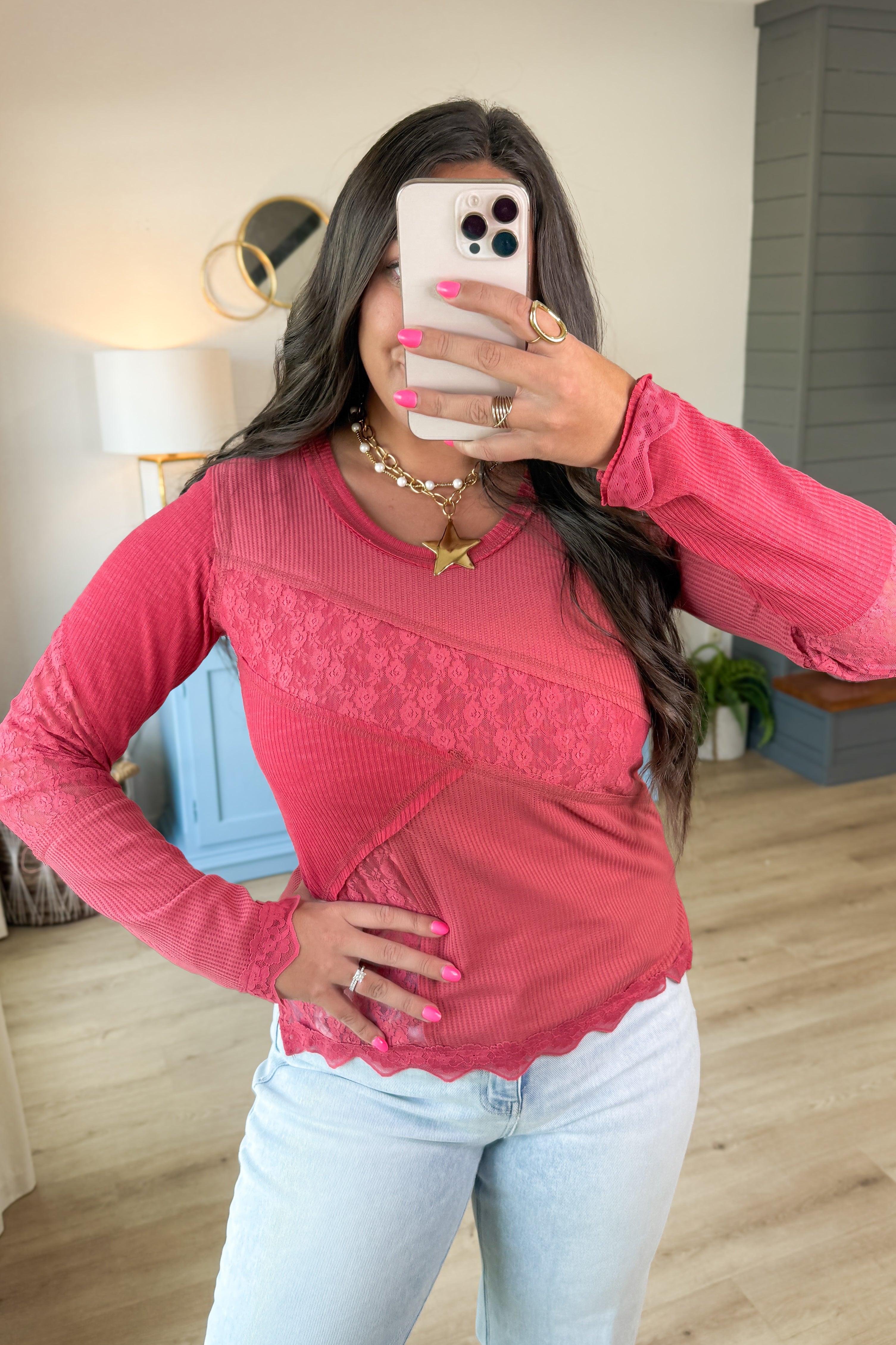 Wander Free Lace Detail Top- Wine