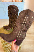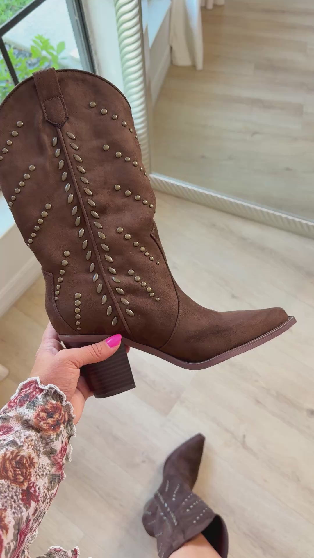 - Elevate your western-inspired wardrobe with these studded suede boots that bring just the right mix of rugged charm and modern edge.