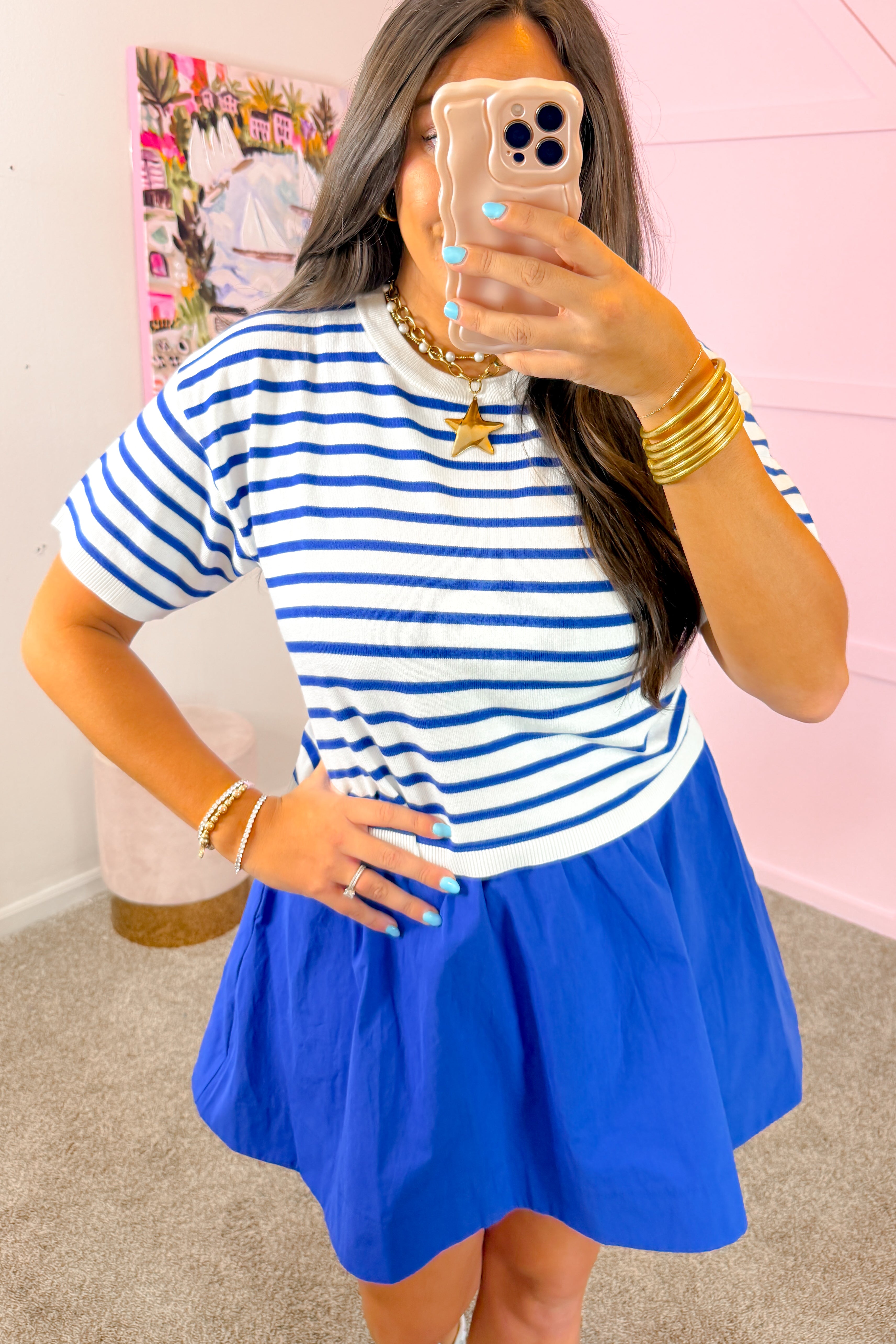 Weekend Pop Blue Striped Tee
