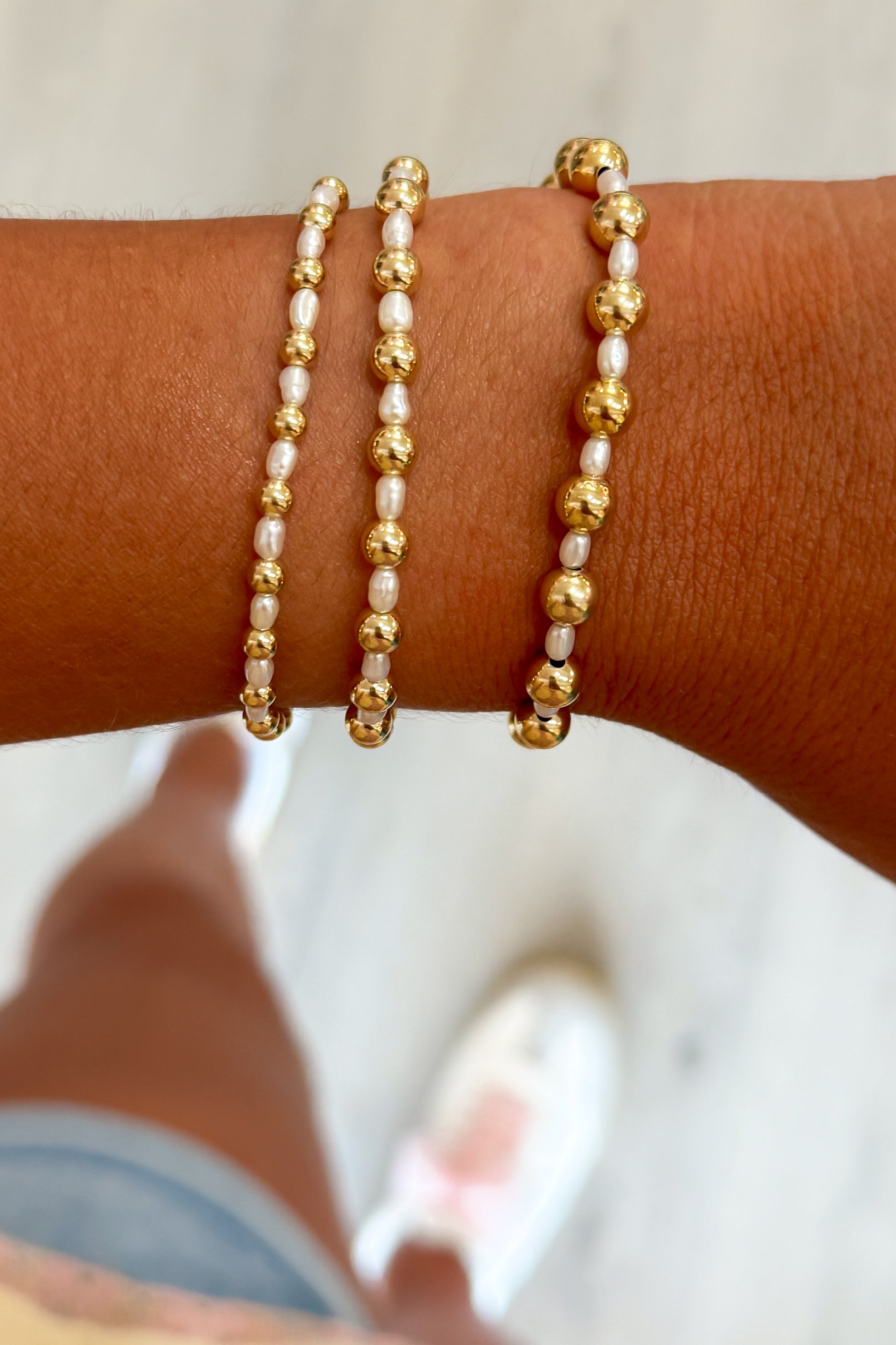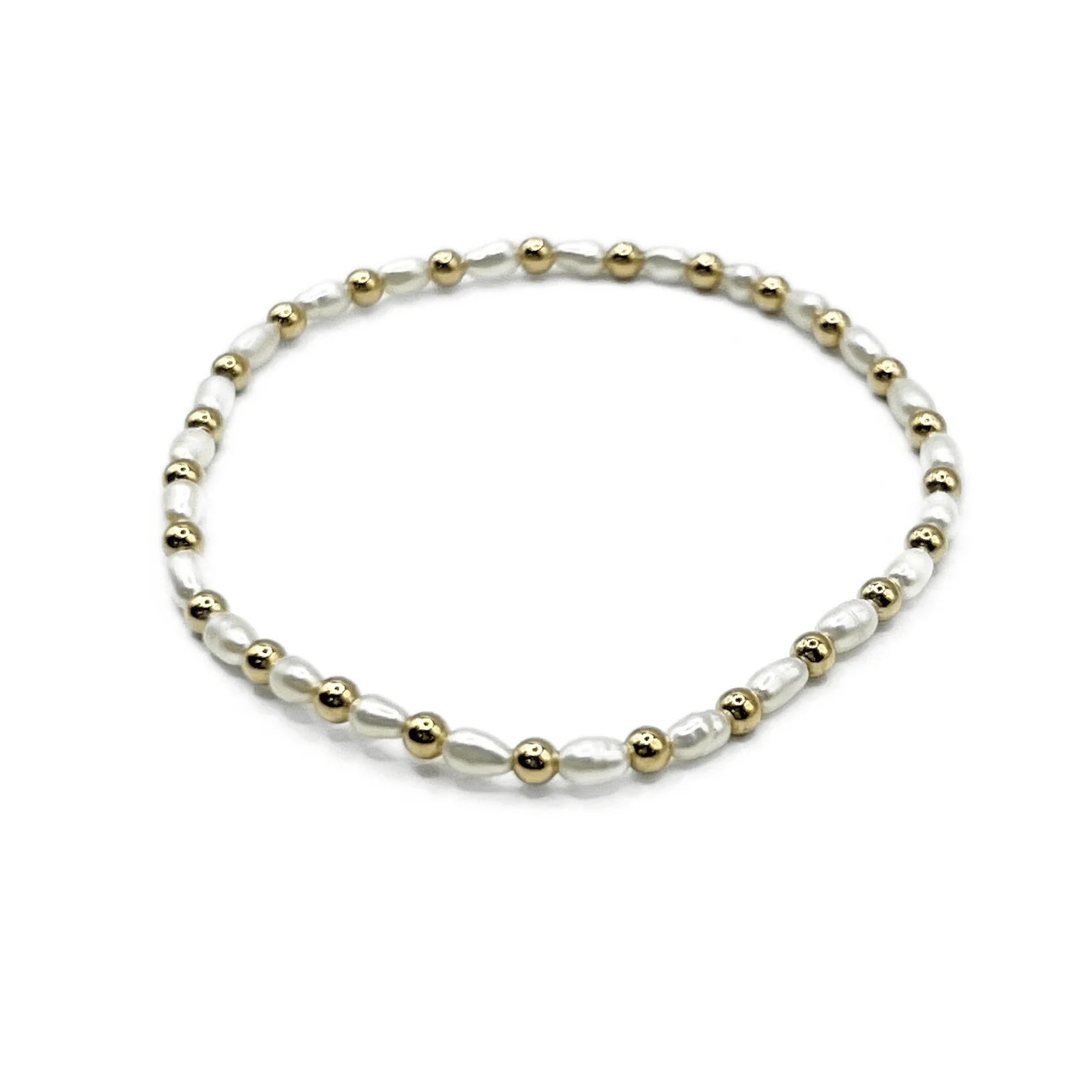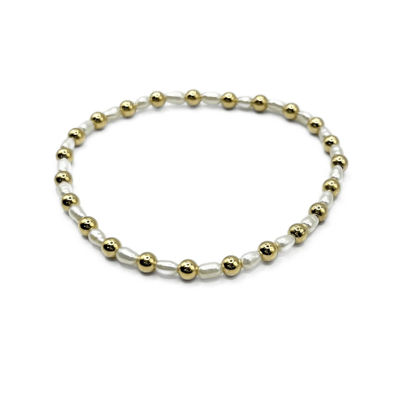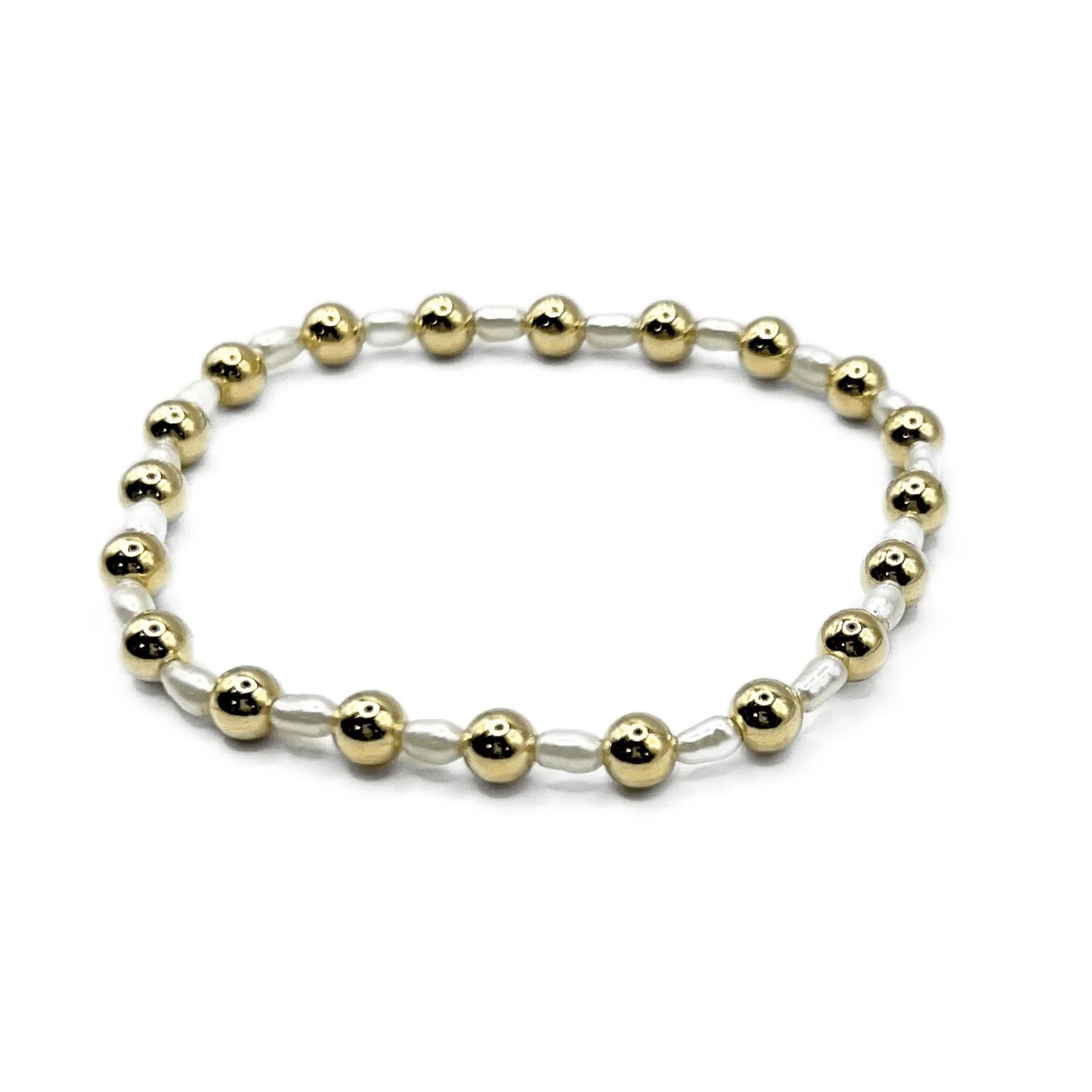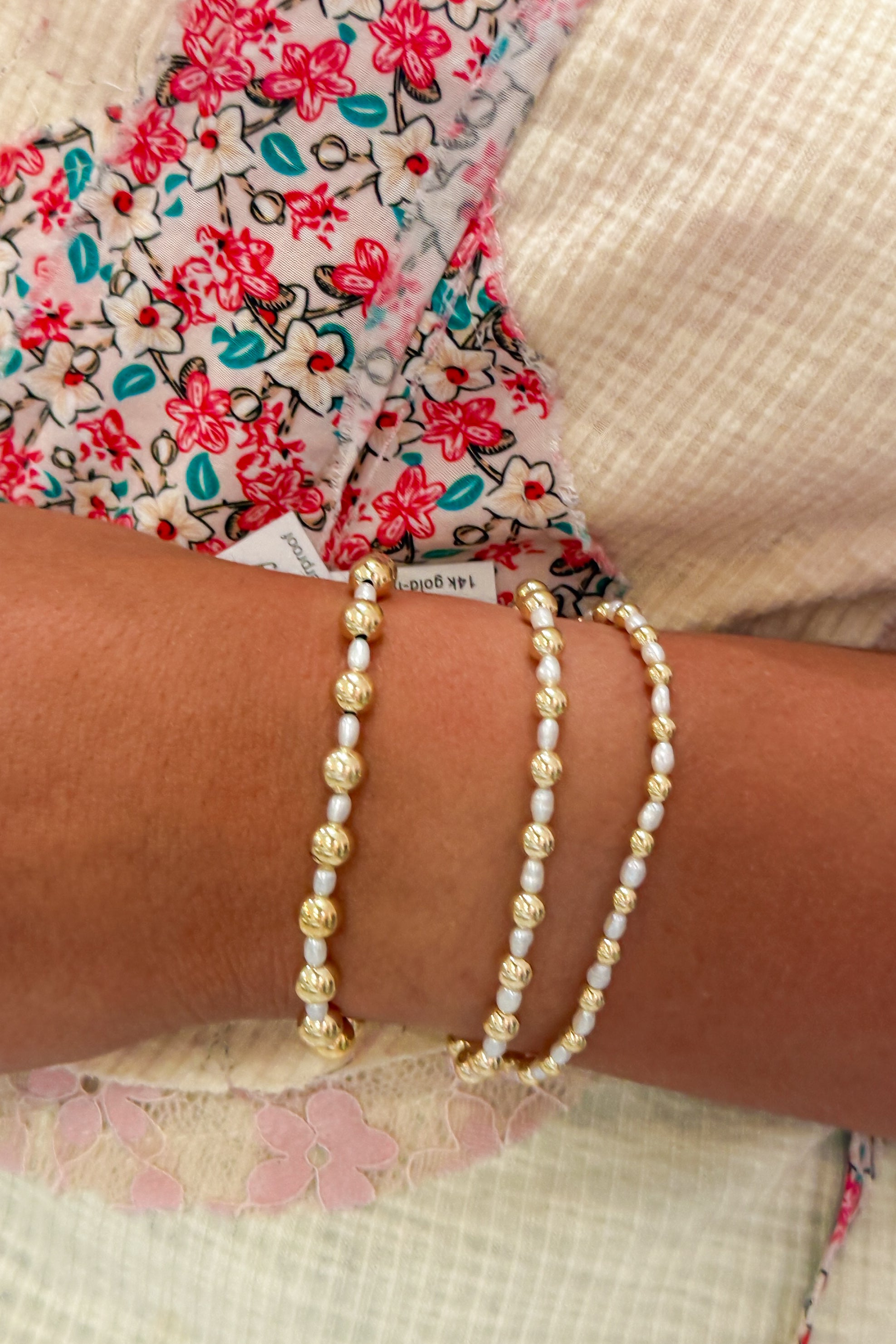 14k gold filled beads with fresh water pearls stretch bracelet. Wear single or stack it.