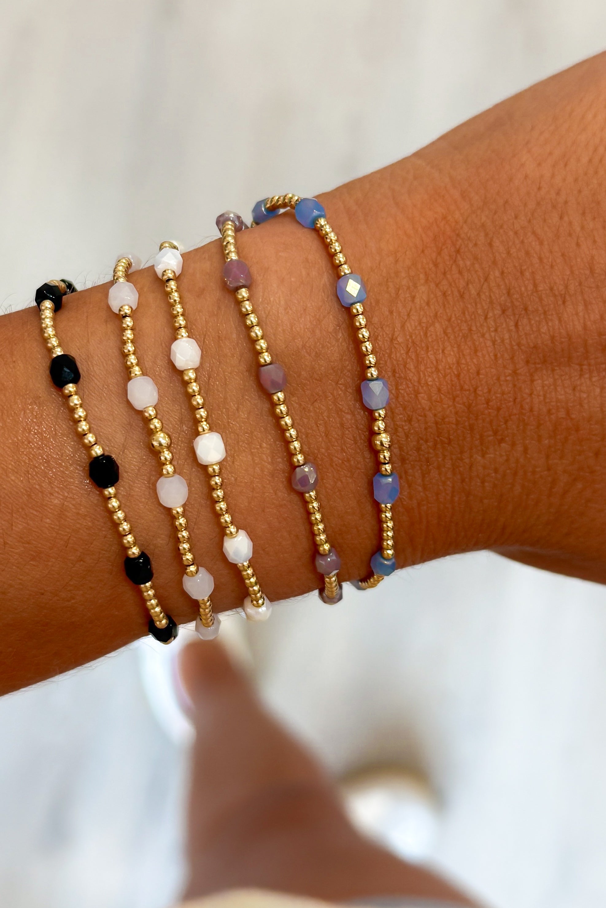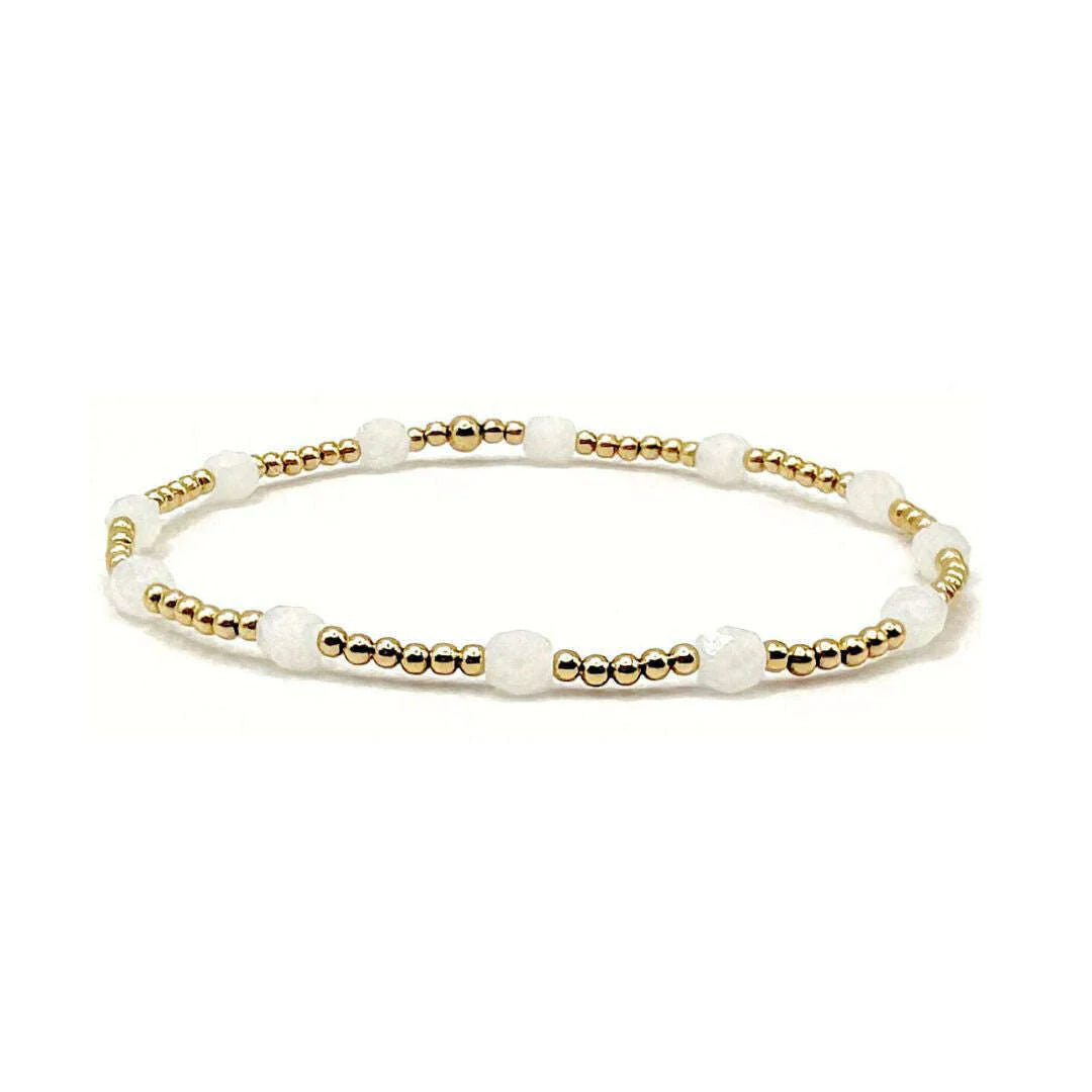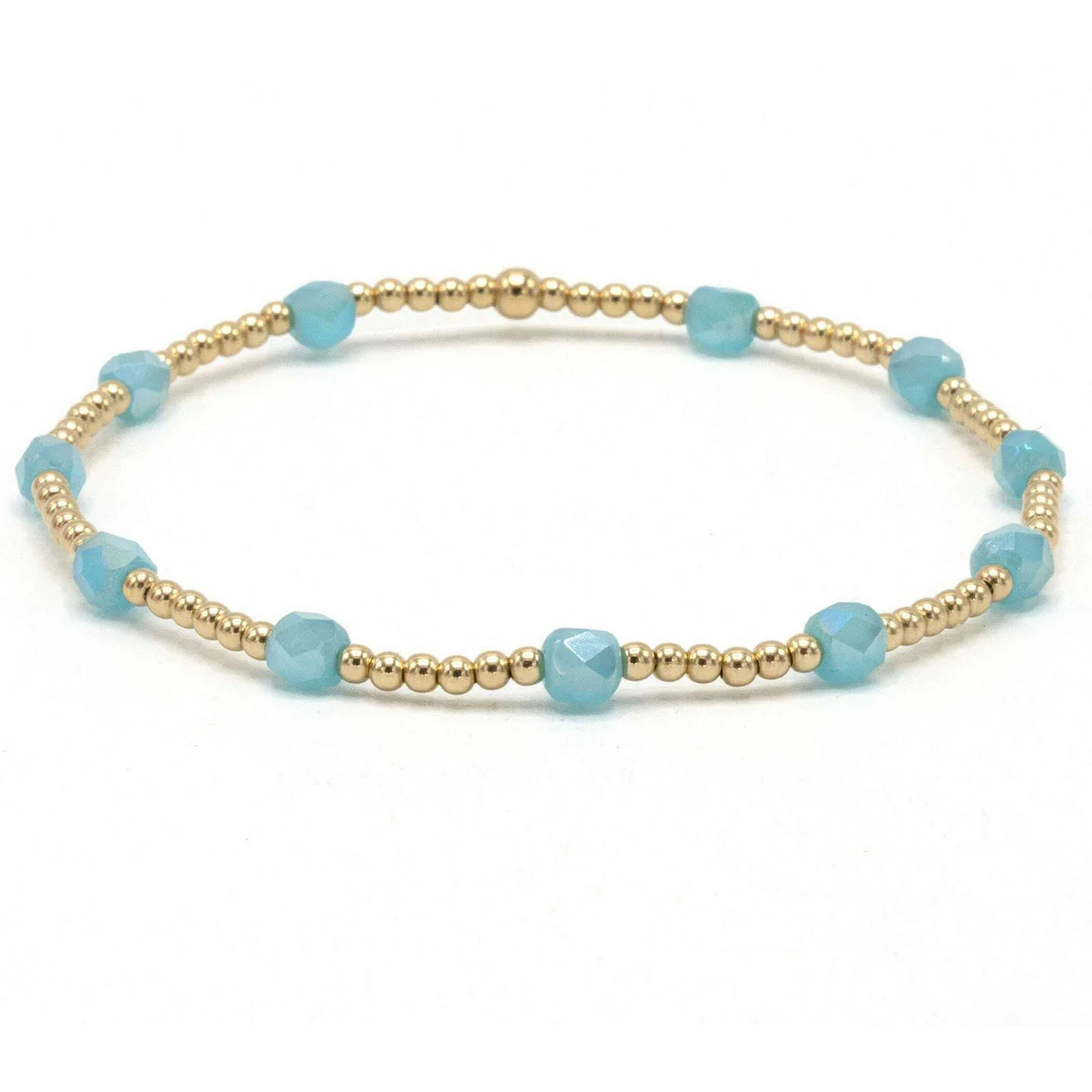 Vibrant yet soothing...like the waters of Key West. Our new collection features our long loved gold filled beads with colored glass beads. Made for stacking, why pick just one color? 14k gold-filled with glass cut beads around. Part of our erin gray waterproof bracelet collection!