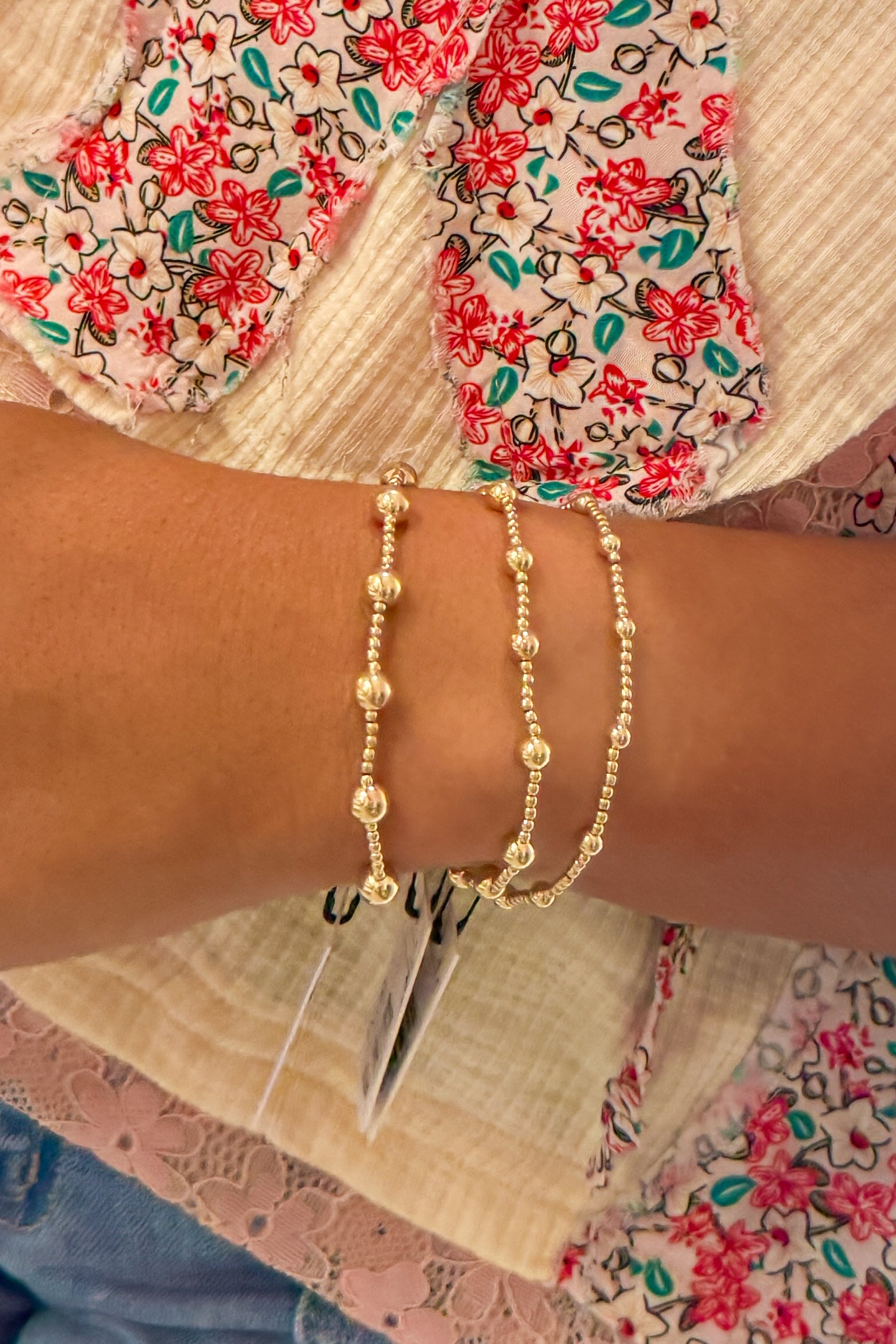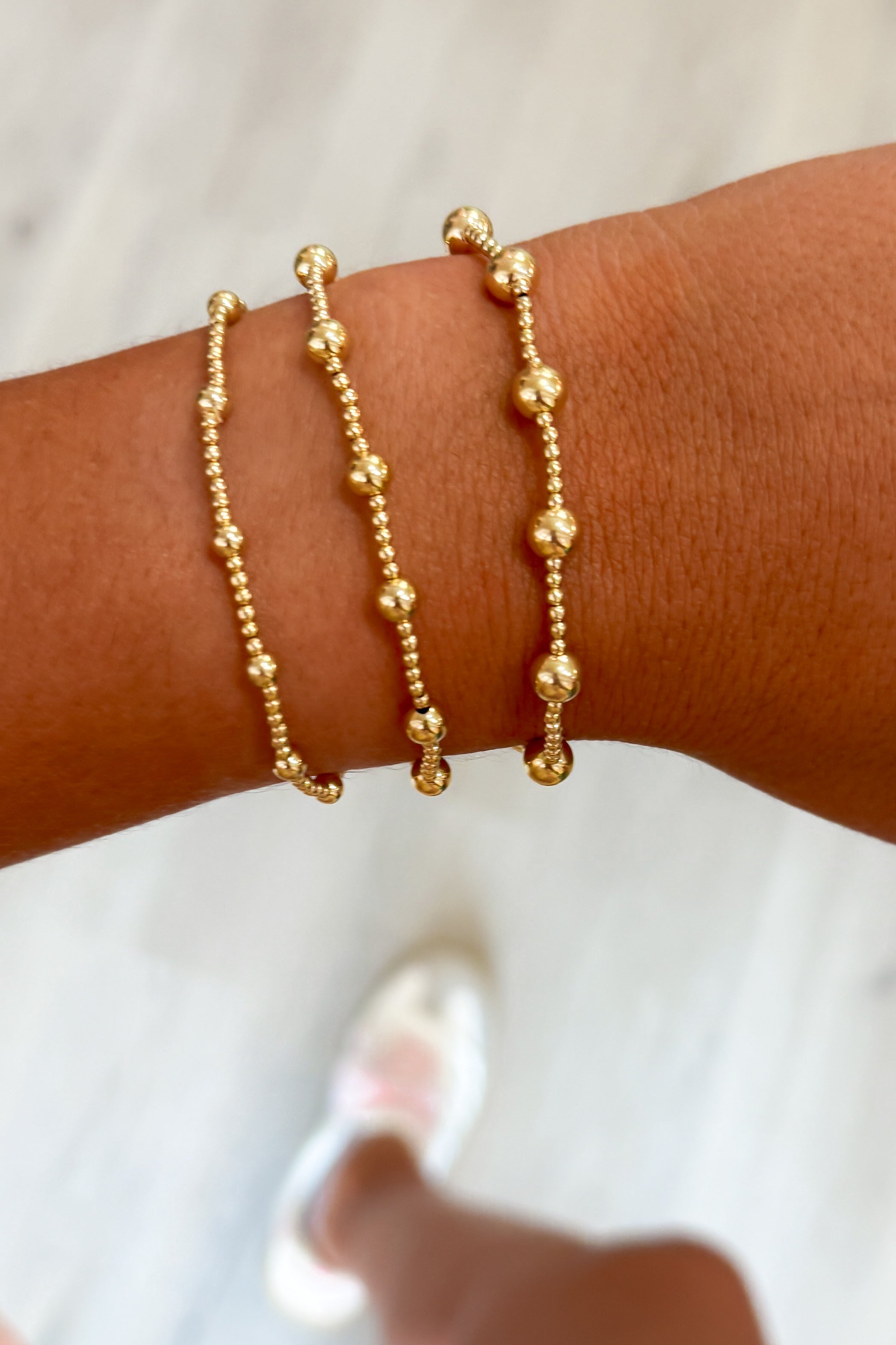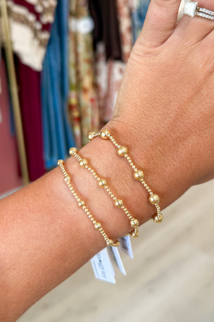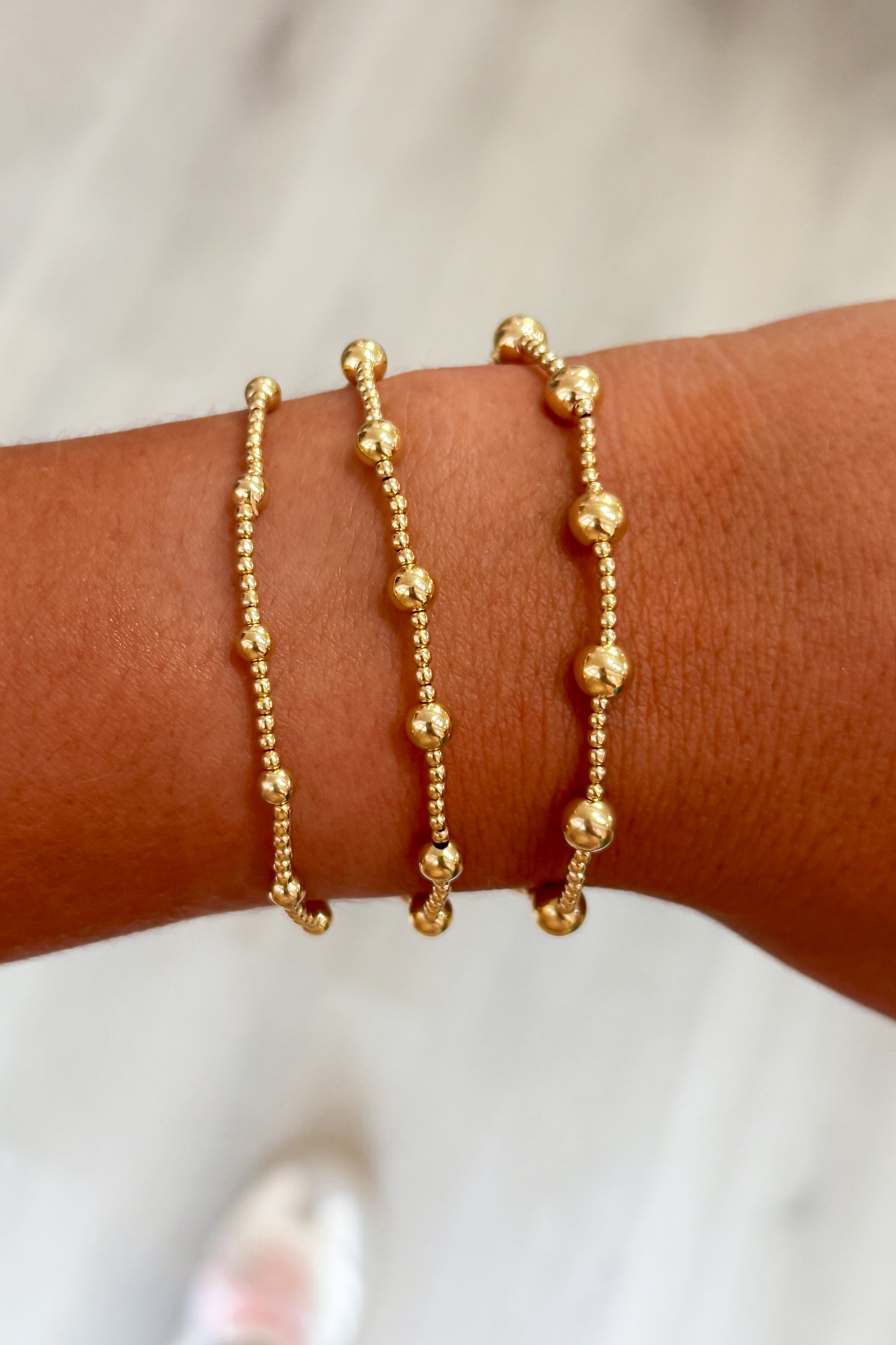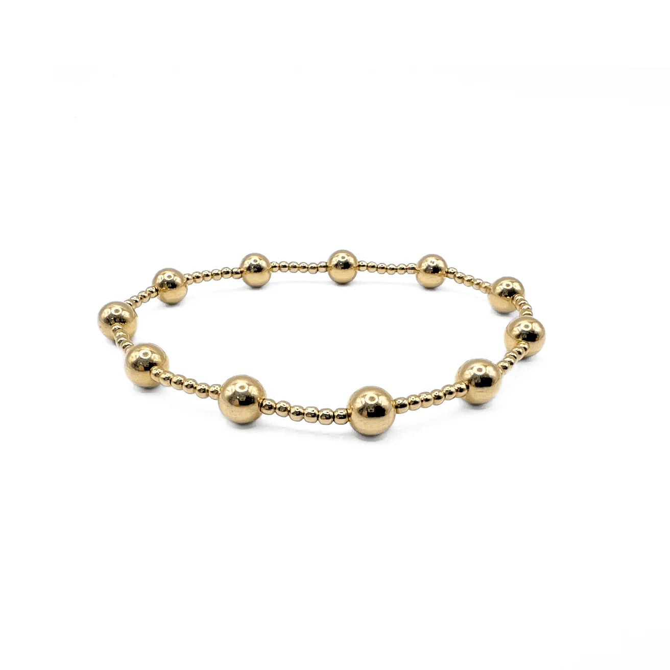 14k gold-filled and waterproof beaded bracelet arranged in big, bold patterns. Wear single or stack it.