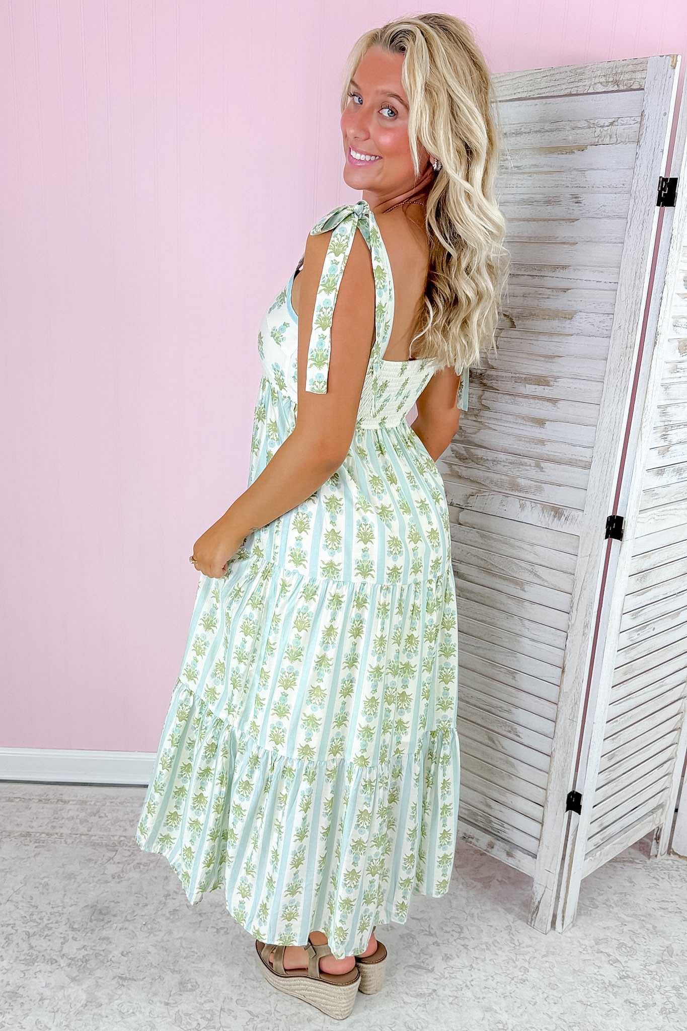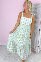 - Featuring a delicate floral print, breezy silhouette, and romantic tiered skirt.