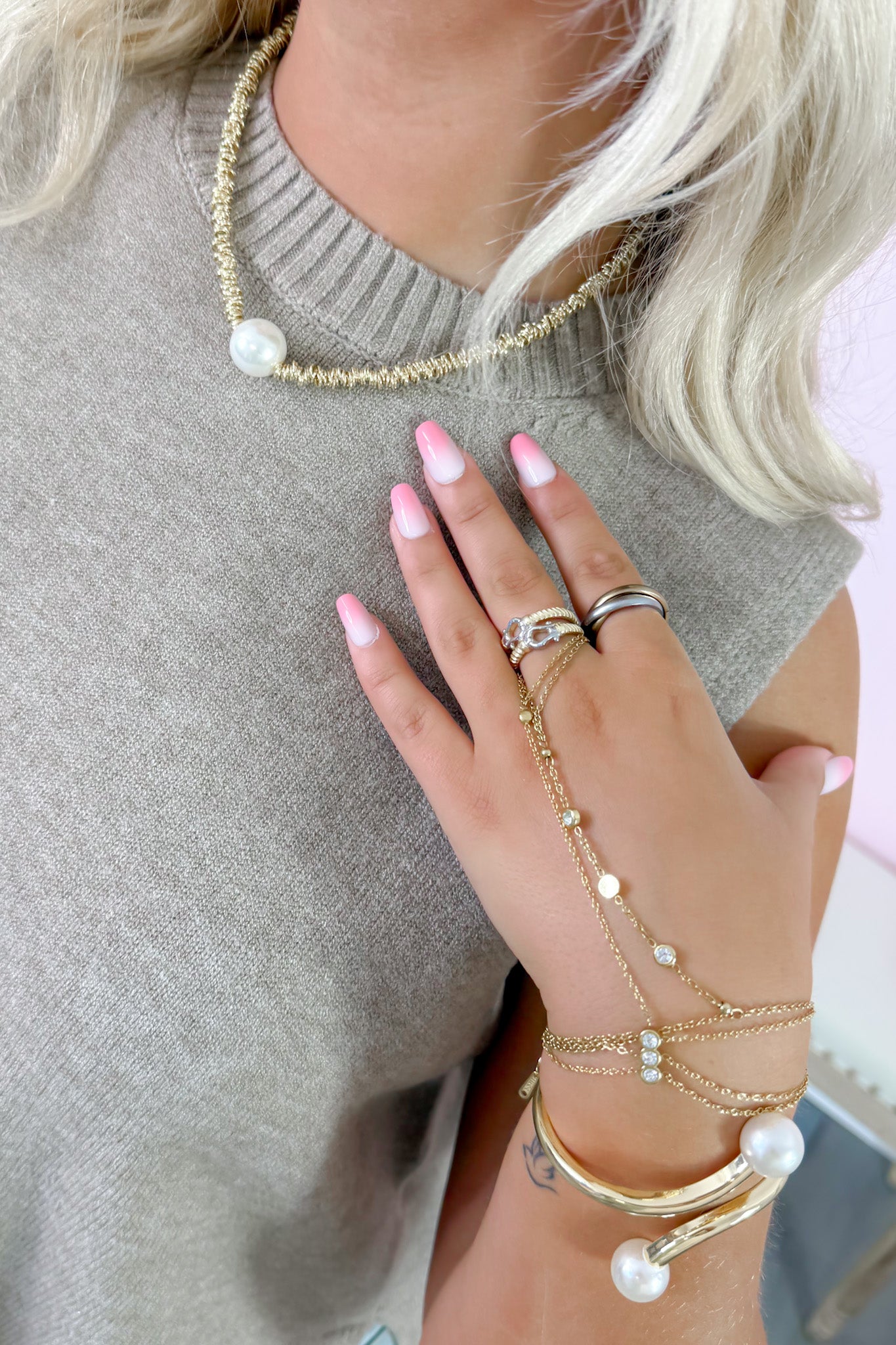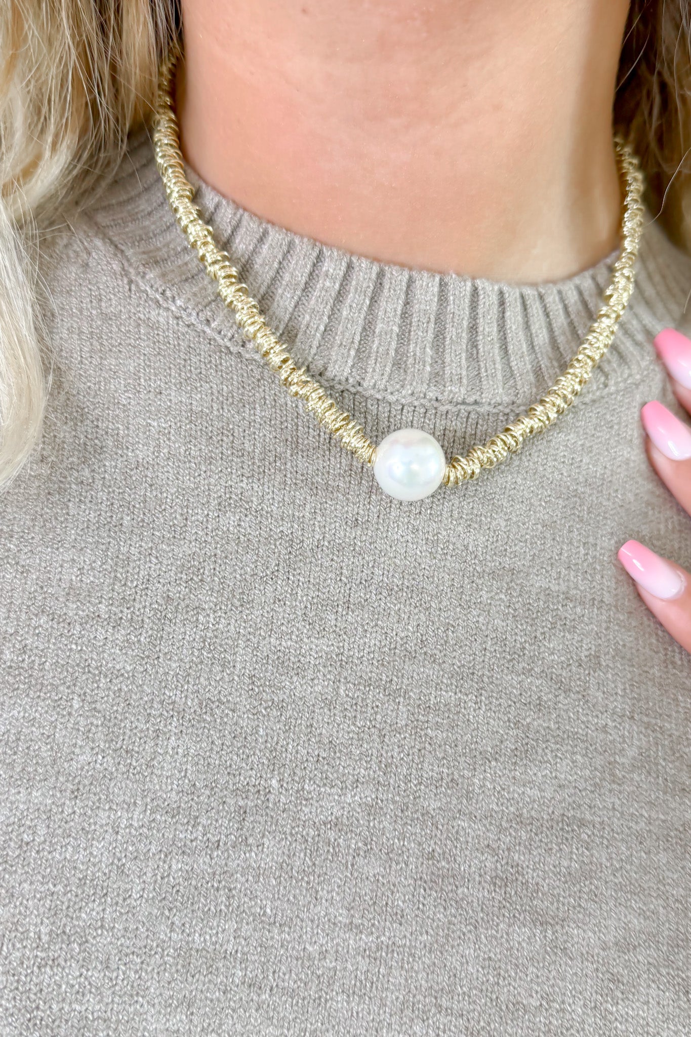- A statement necklace with a pearl pop!