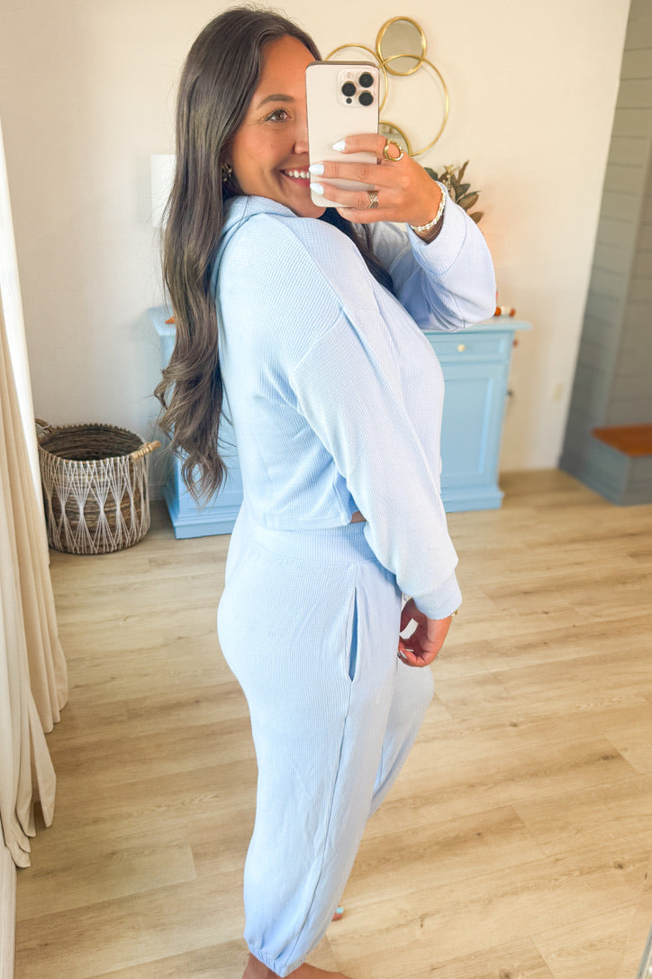 - Cozy meets chic in this ultra-soft lounge top, designed in a fresh periwinkle blue. With its relaxed cropped fit and lightweight feel, this top is perfect for layering, lounging, or pairing with the matching joggers for a complete set. Its softness makes it an instant favorite for both comfort and style.