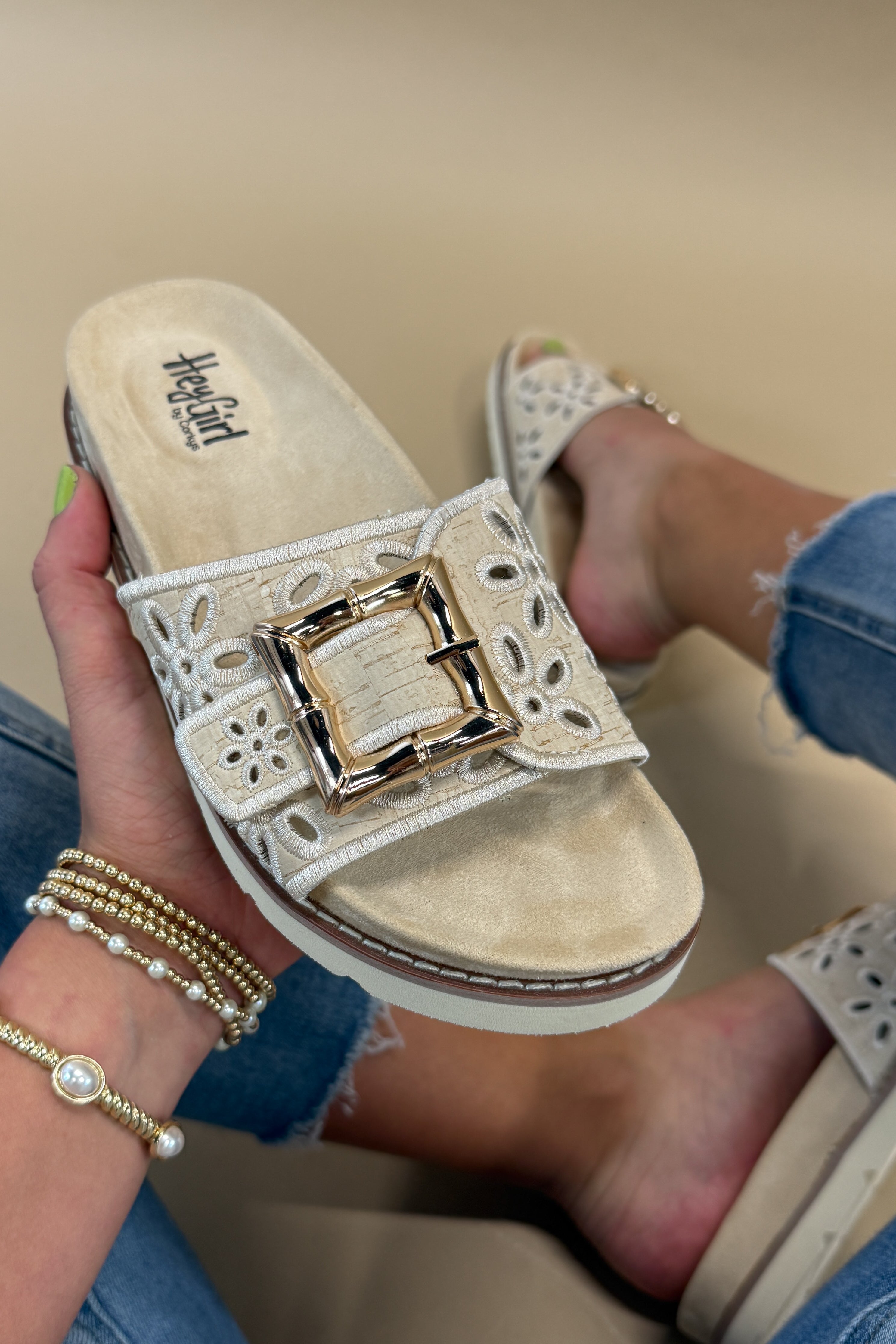 Floral Buckle Sandals- Natural