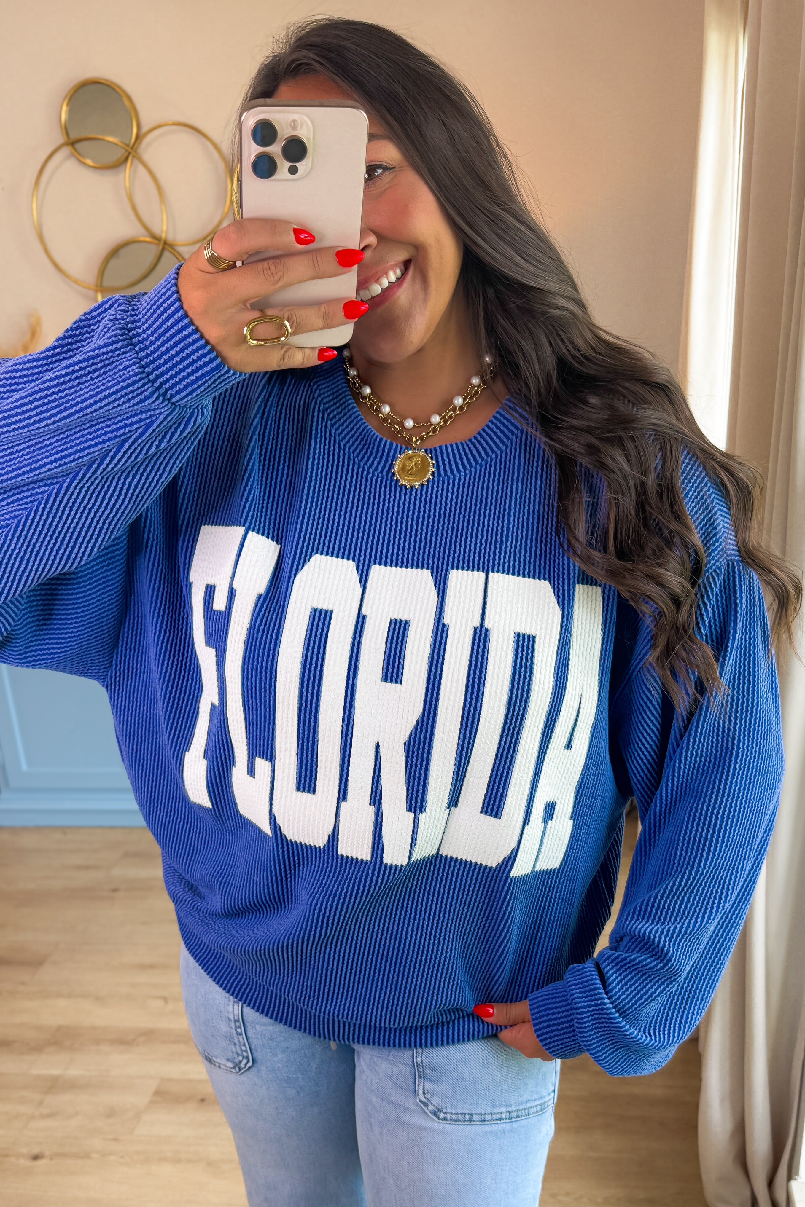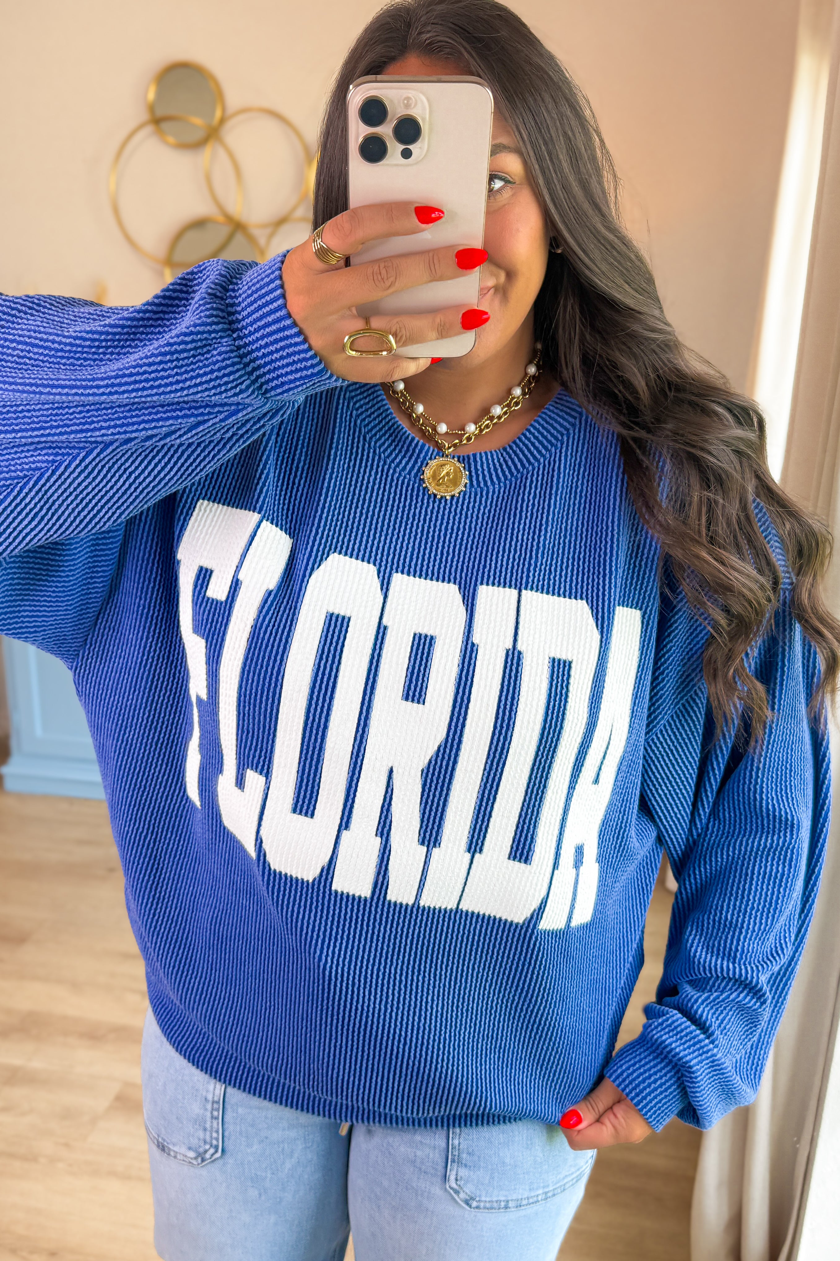 "FLORIDA!!!" Ribbed Crewneck- Royal Blue