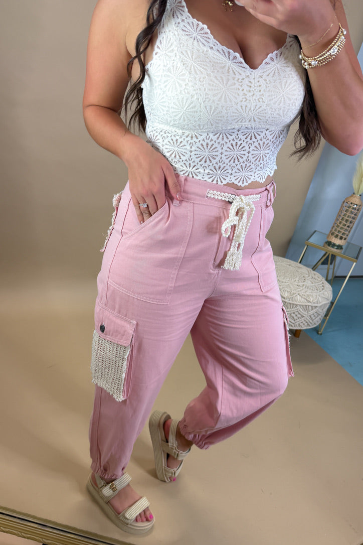 The Carefree Pink Denim Jogger