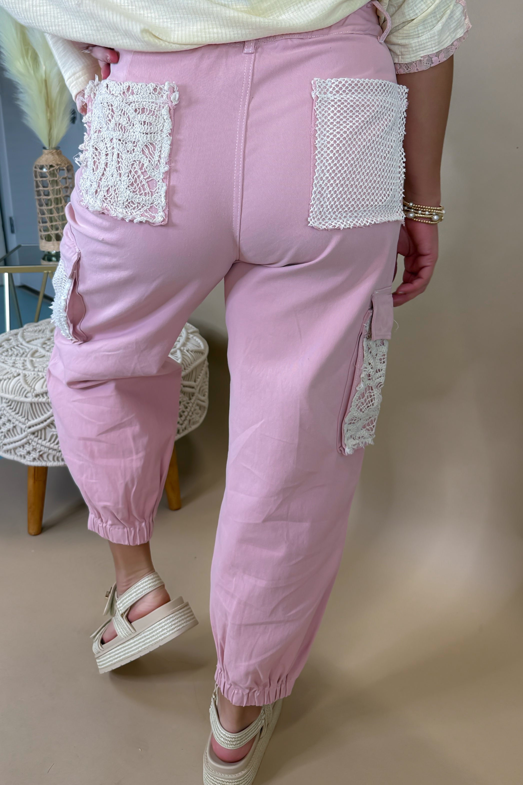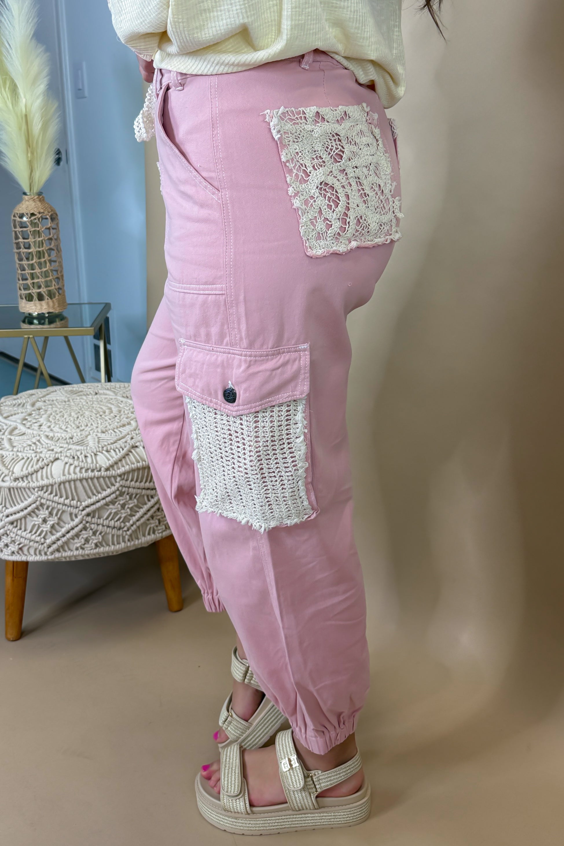 - Bring out your boho side with these lace + patchwork lightweight denim joggers!