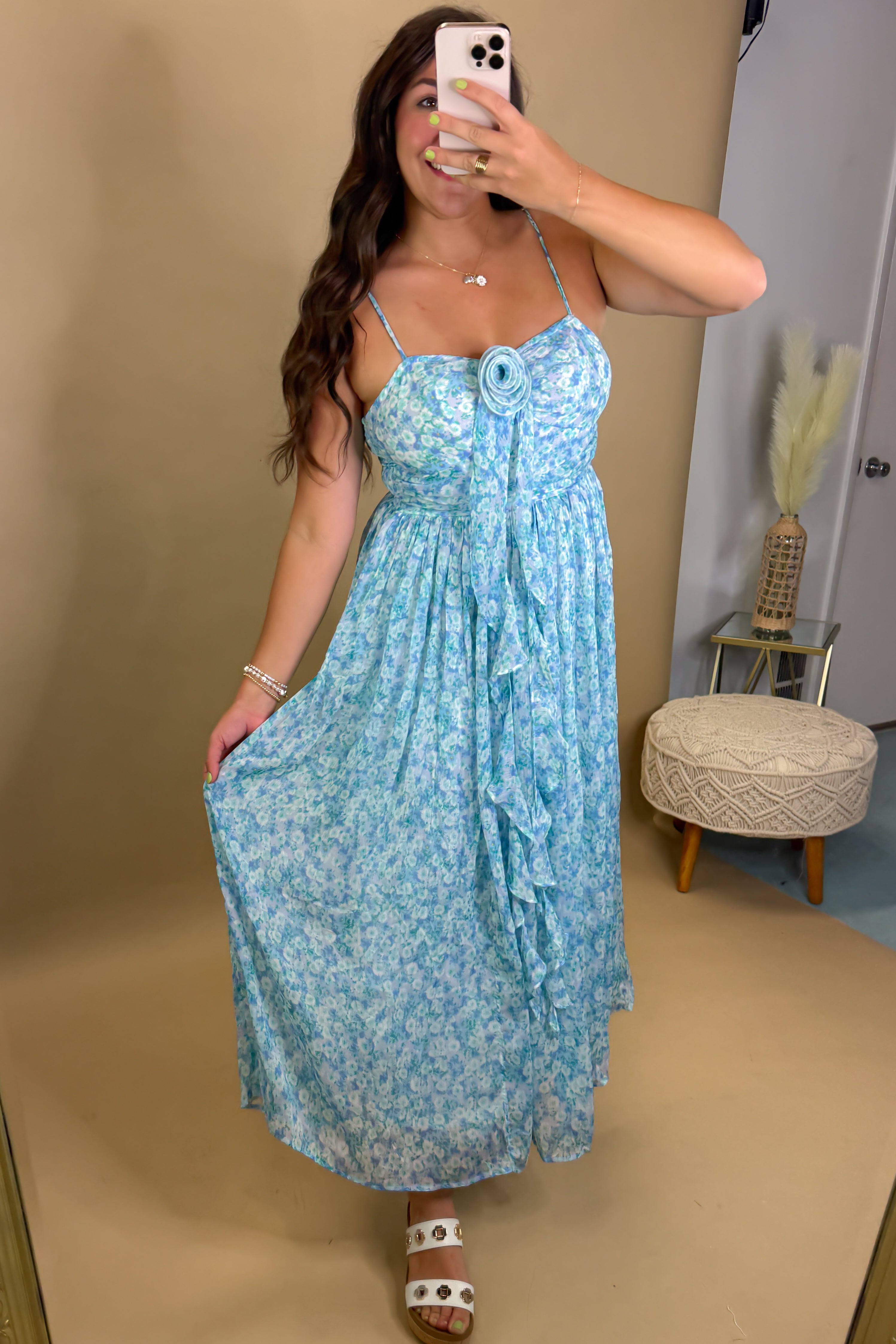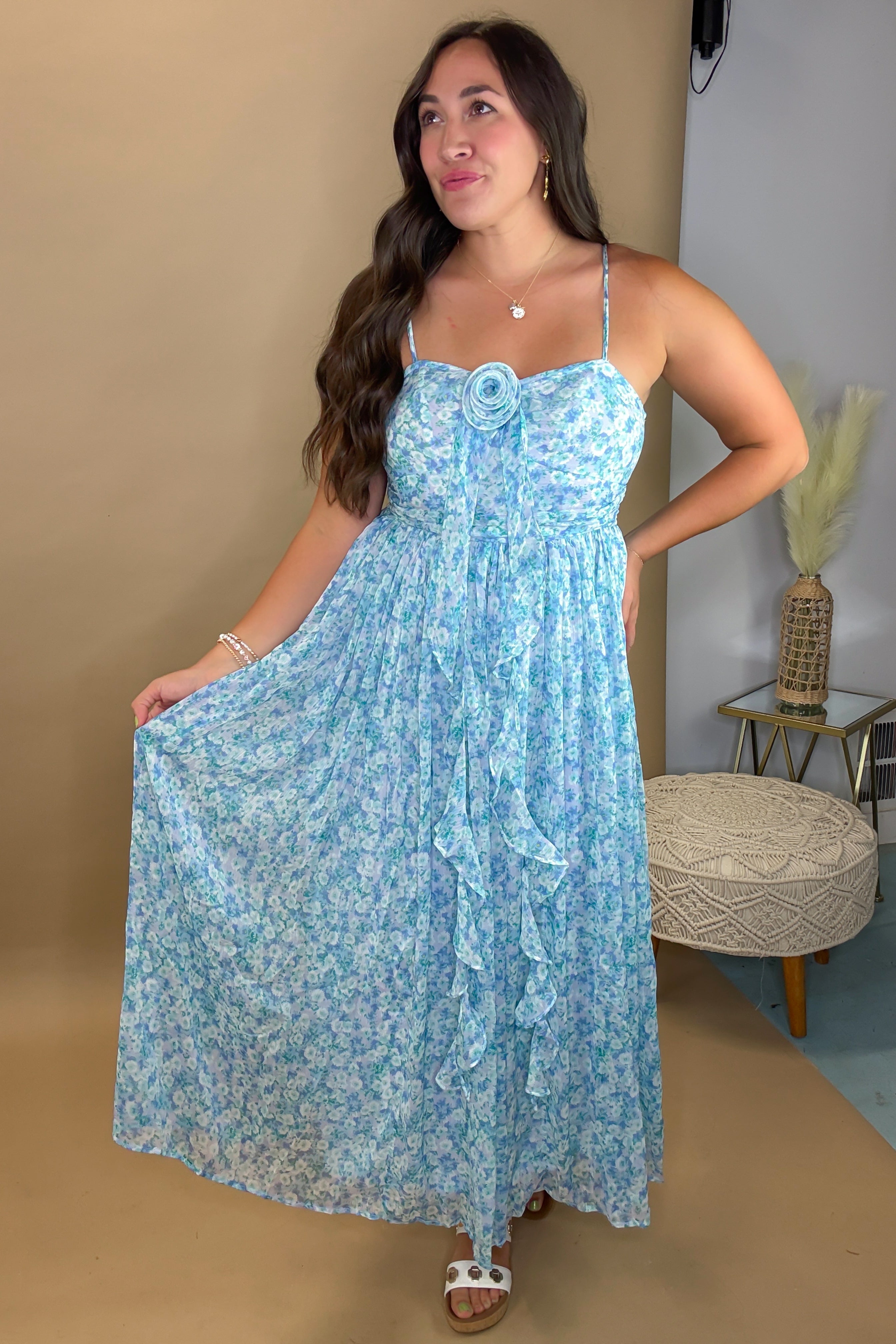 - Stunning bright blue floral dress perfect for weddings, showers, vacations ans more
