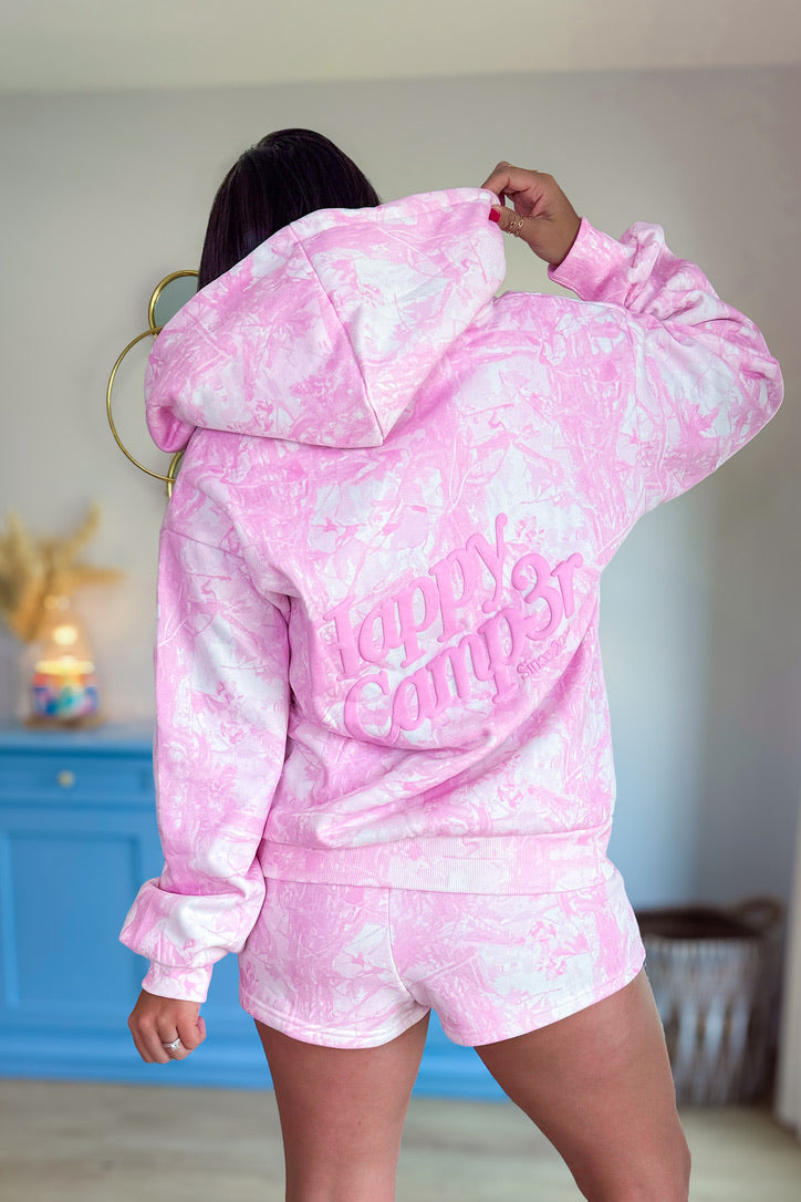 Comfy, cute, and ready for anything. The Soft Pink Camo Ellie Shorts are made from our soft cotton-blend fleece for that perfectly broken-in feel. Featuring a relaxed fit, stretchy elastic waistband, and a subtle pink camo print, they’re your go-to for warm-weather lounging or laid-back weekends. Flattering, functional, and totally chill.