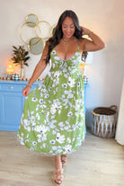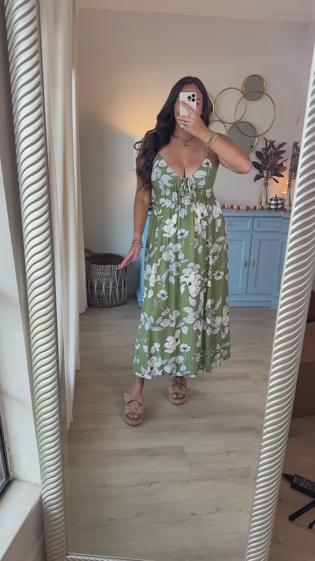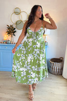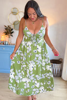 - Step into effortless boho charm with this flowy maxi dress, featuring an olive base accented by a soft floral print.