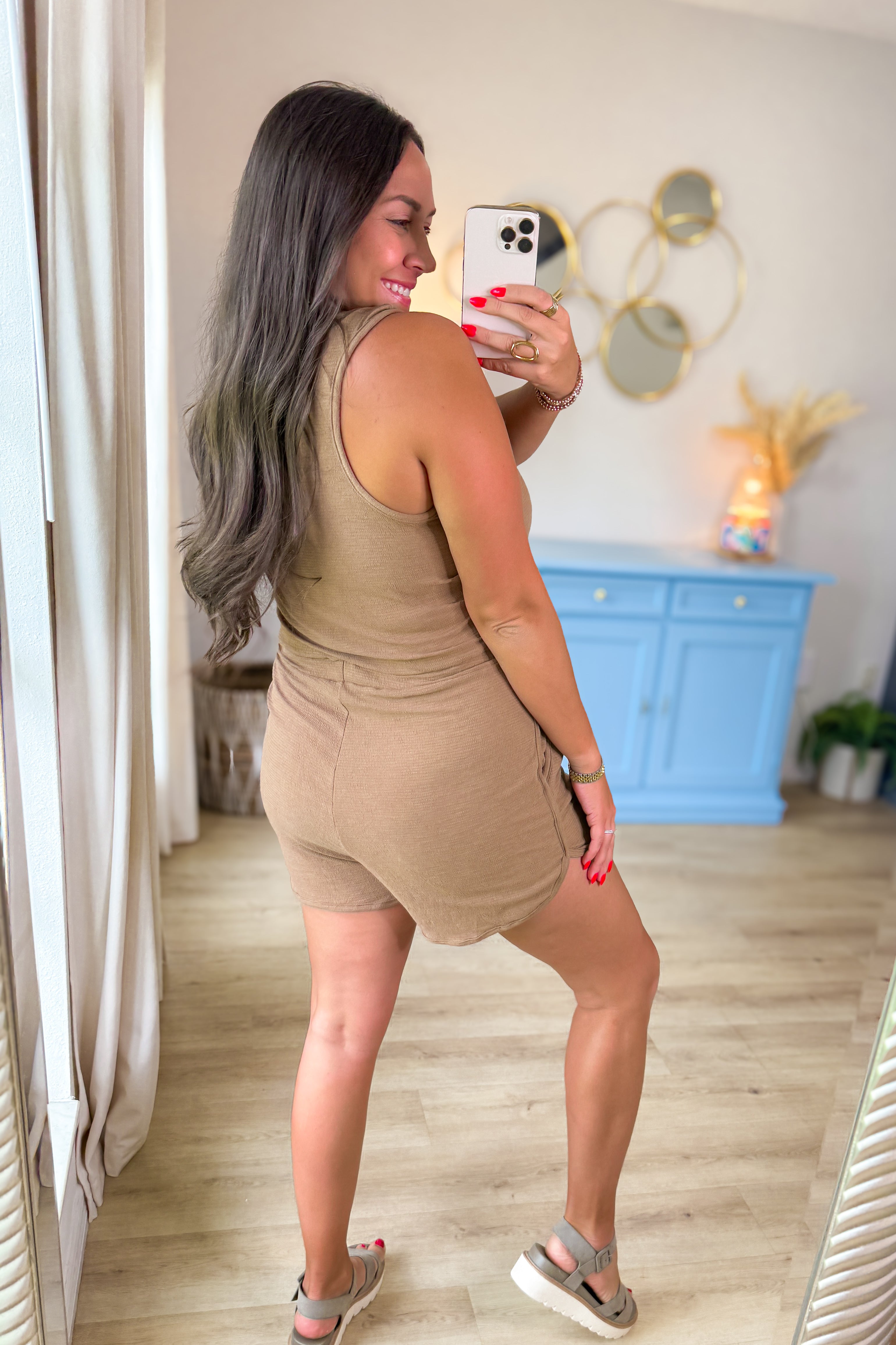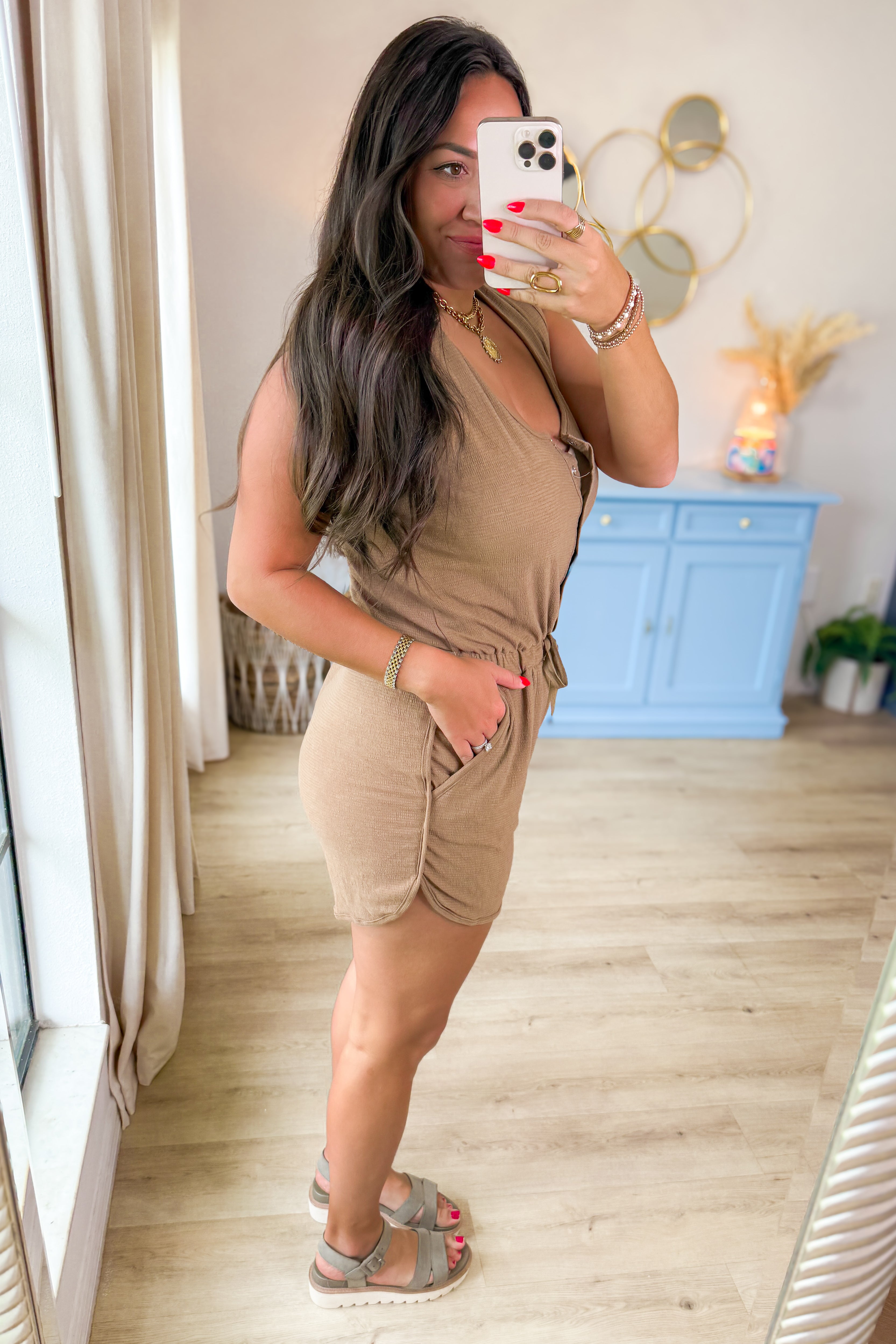 - Keep it comfy and cute in the Cool Cocoa Romper. This effortless one-piece features a soft, textured knit in a rich cocoa tone, a button-down front, and a flattering drawstring waist. With side pockets and a relaxed fit, it’s your go-to for everything from slow mornings to sunny strolls.