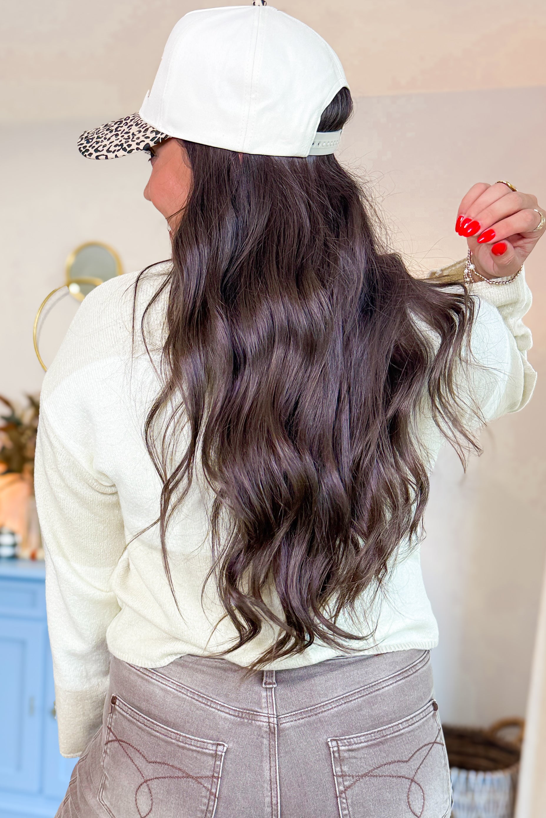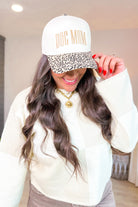 - This trucker-style hat is made for casual days with a playful twist on a classic dog mom design with a leopard twist