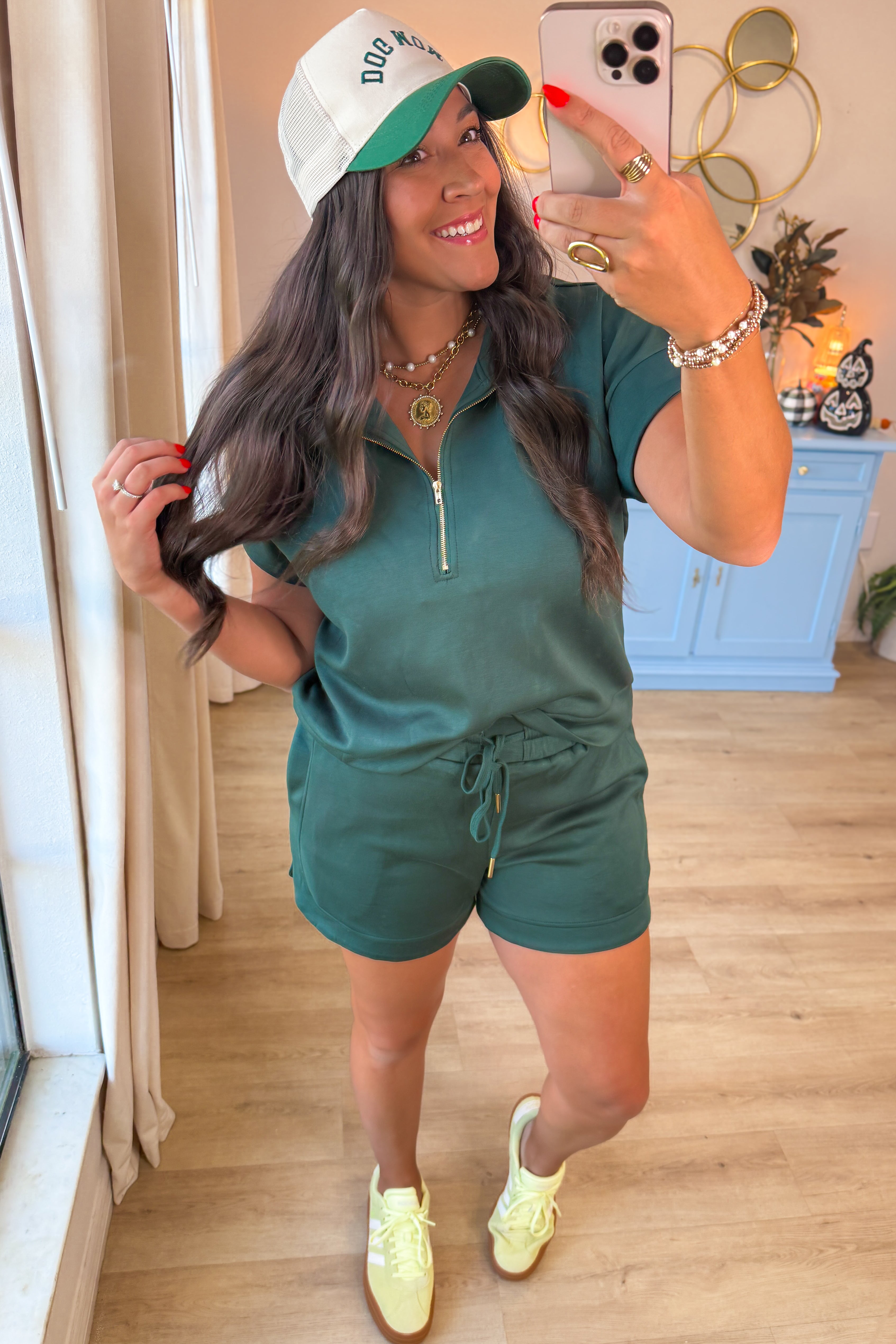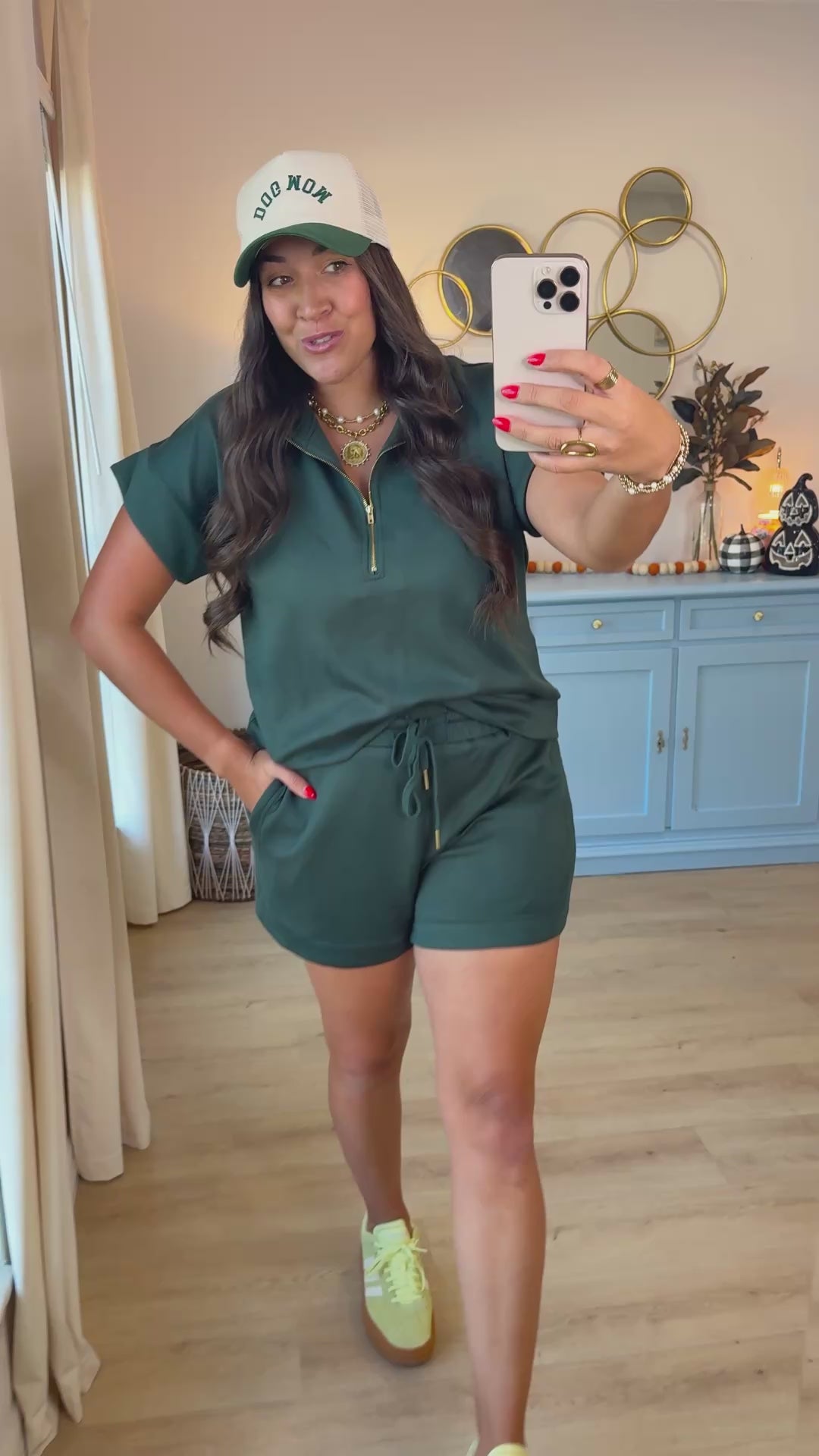 - This cozy quarter zip brings the perfect blend of comfort and style with its soft fabric and relaxed fit. The effortless design makes it easy to pair with the matching shorts (sold separately), leggings, or denim, whether you’re traveling, lounging, or heading out for a casual day.