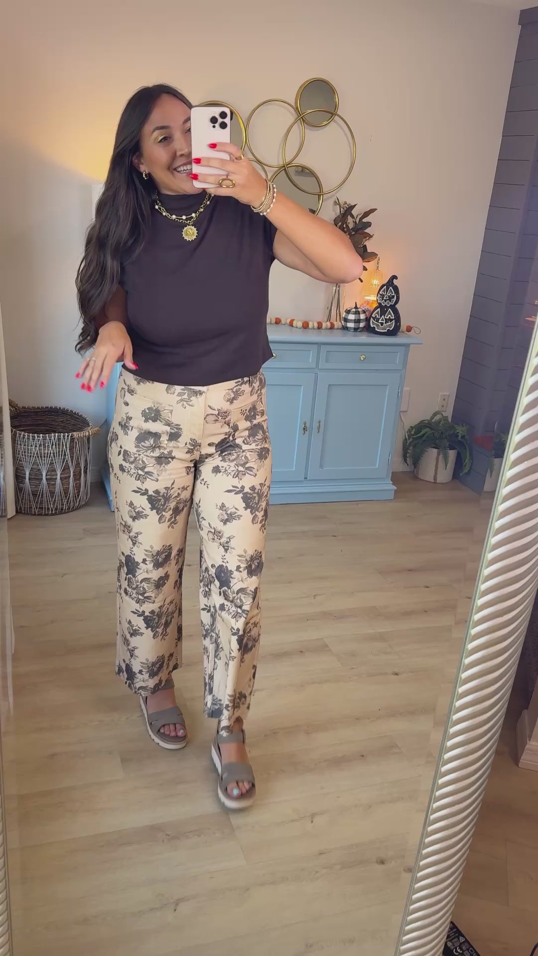 • These wide-leg floral pants bring a vintage-inspired touch with their soft fabric and relaxed silhouette. The high-rise fit and subtle floral print make them effortlessly chic, perfect for pairing with cozy knits or dressy tops. Ideal for fall gatherings, brunch dates, or simply elevating your everyday style.