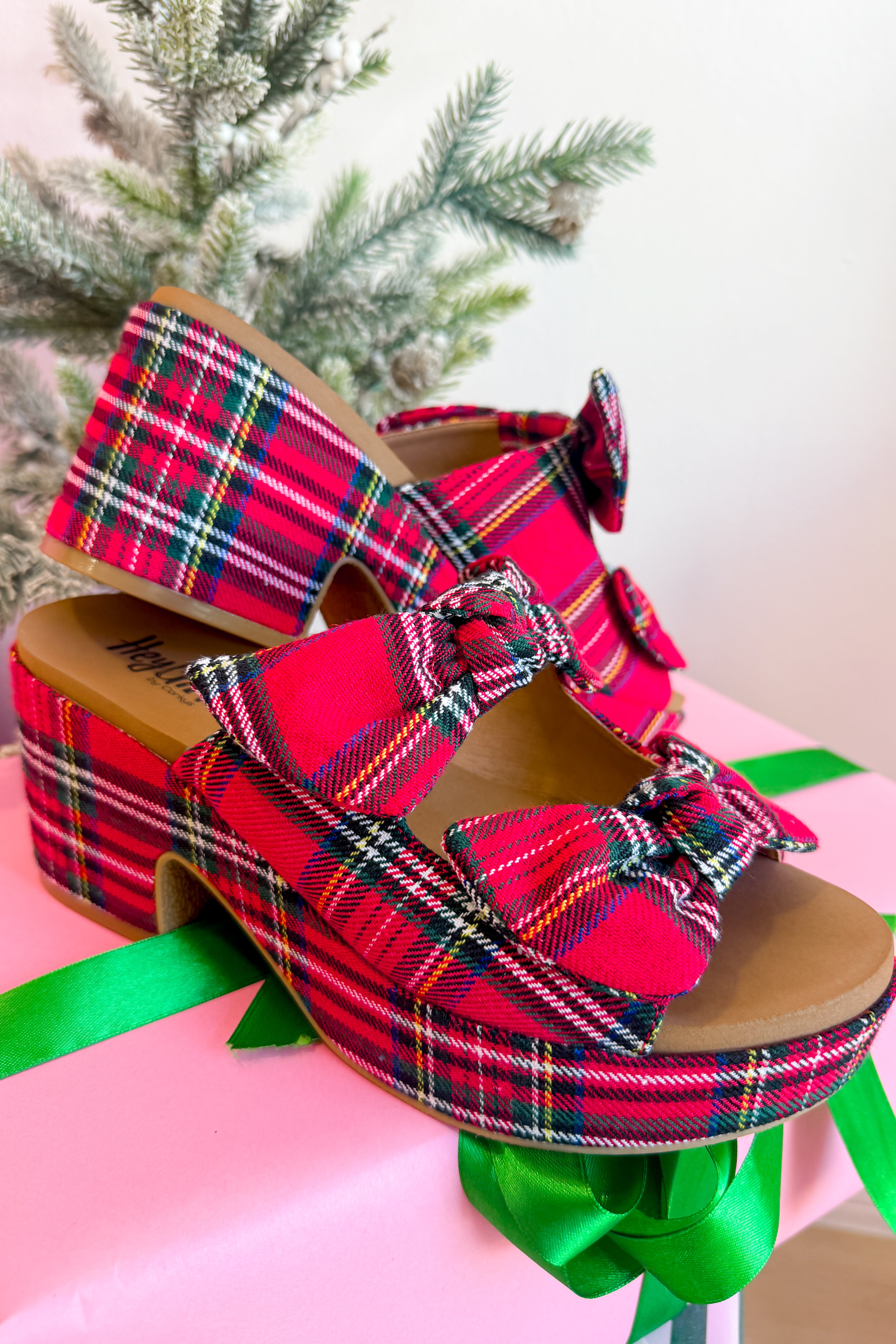 - These platform heels bring holiday cheer with their bold red plaid print, bow details, and comfortable chunky heel.