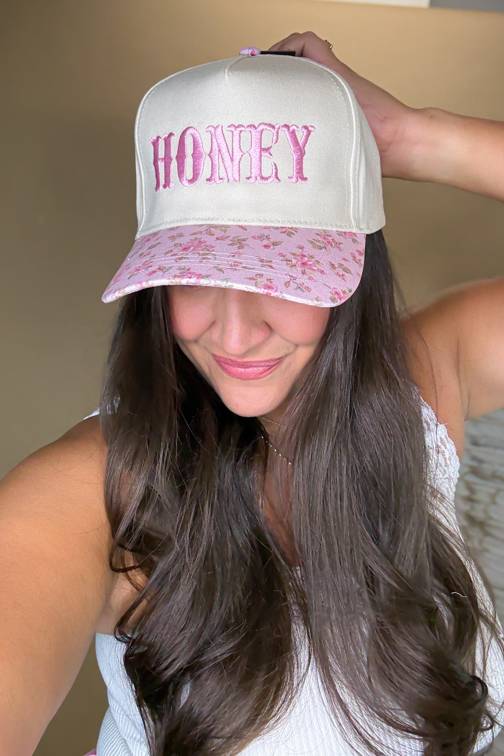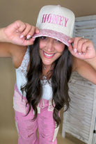 Honey Embroidered Floral Trucker Hat - Pink
