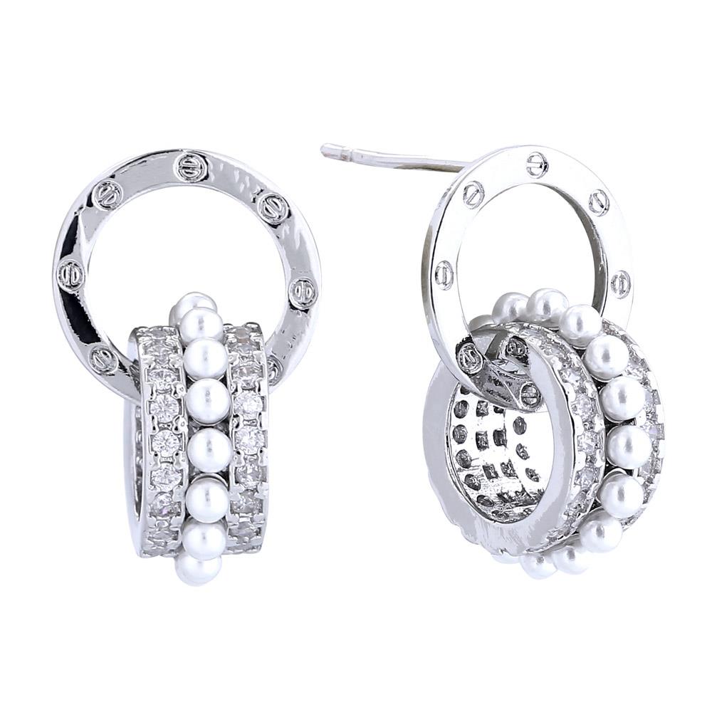 - 14K Gold/White Gold Dipped Pearl Hoop Drop Earrings