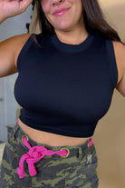 Jamie Ribbed Seamless Crop Top-Black