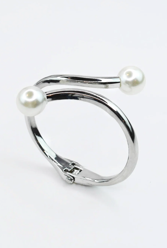 Kind of a Moment Double Pearl Bangle- Silver