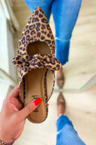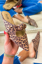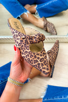 - Featuring a chic pointed toe, playful knot detail, and bold leopard print, these slip-on mules are a statement shoe that instantly elevates any outfit.