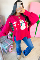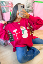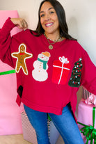 - This cozy crimson pullover captures everything you love about the season — from gingerbread cookies and snowmen to twinkling trees and ribbon-wrapped gifts