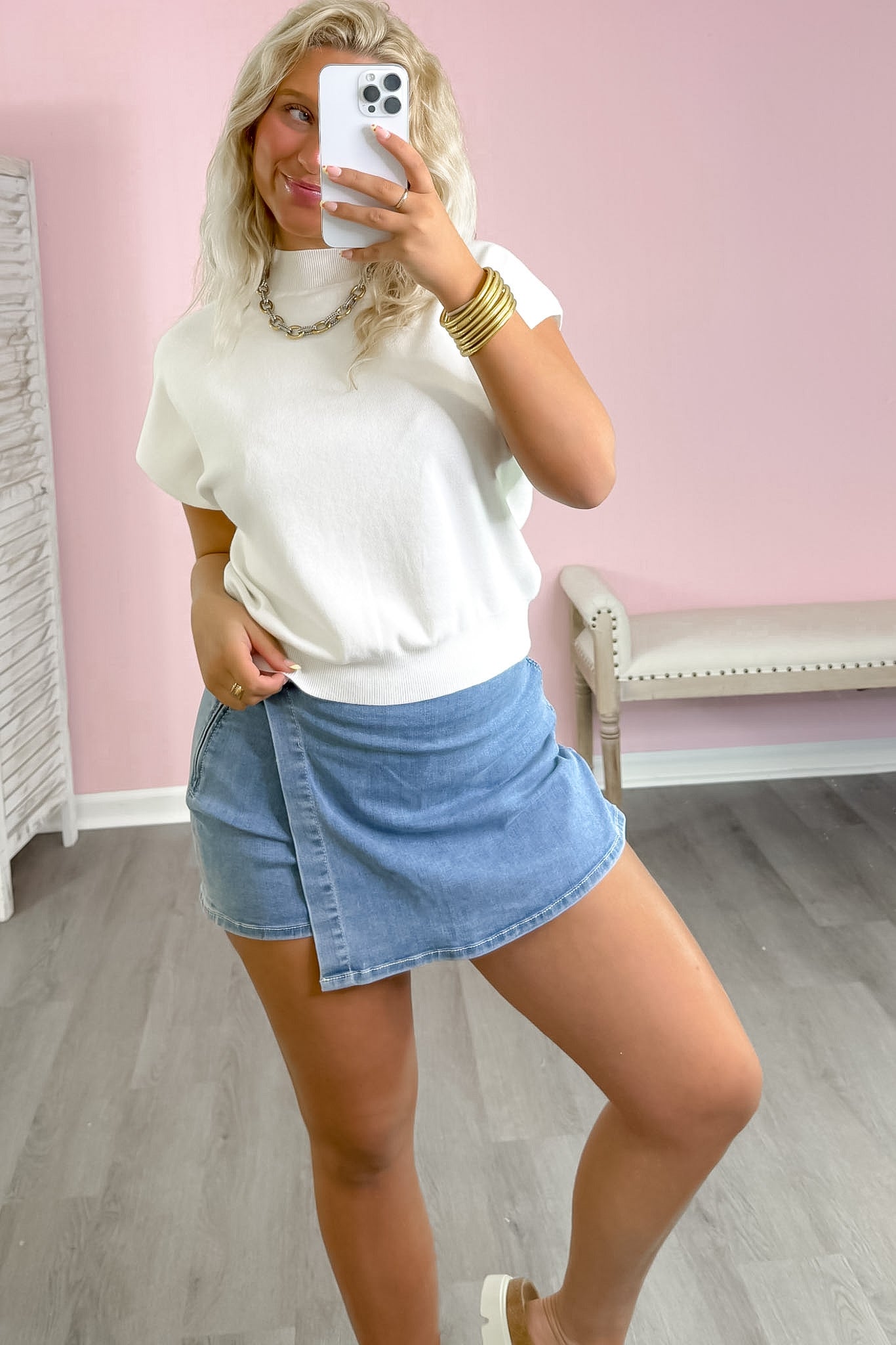 - Relaxed drape with a refined mock neckline for an elevated everyday look.