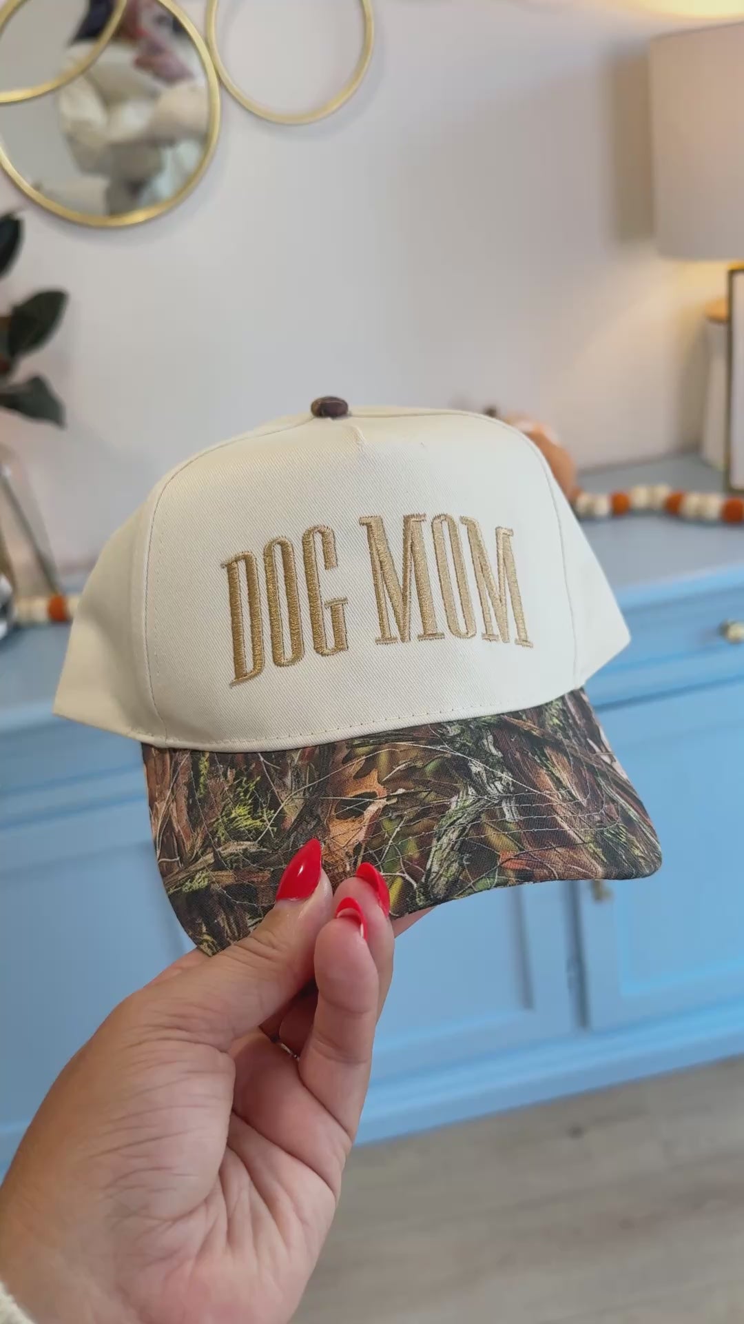 - This trucker-style hat is made for casual days with a playful twist on a classic dog mom design.